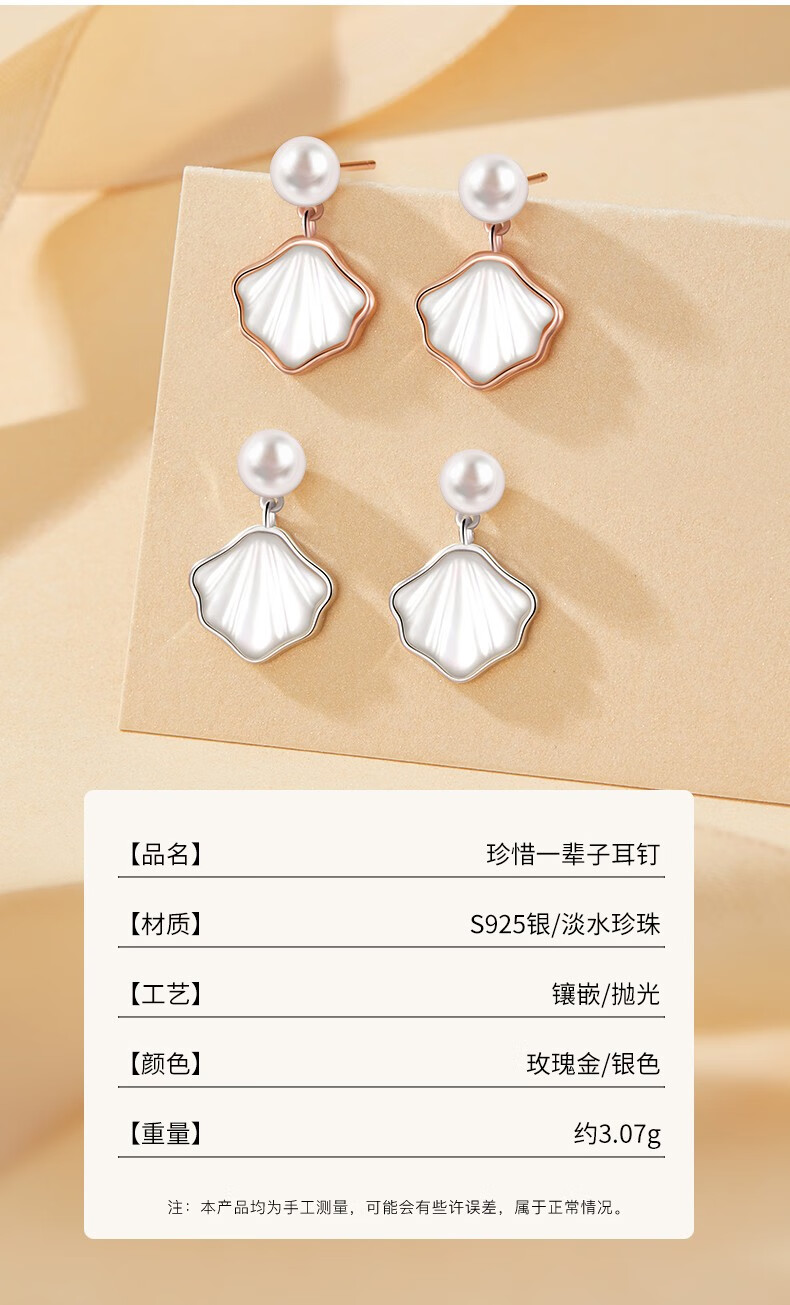 MOLADY S999 Pure Silver One Lifetime Necklace for Women Rose Gold Pendant Birthday Anniversary Gift for Girlfriend and Wife Cherish a Lifetime Pearl Earrings*Rose Gold