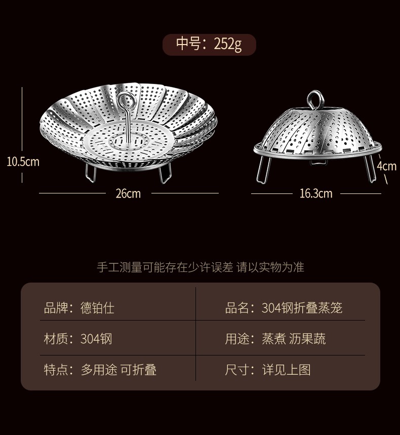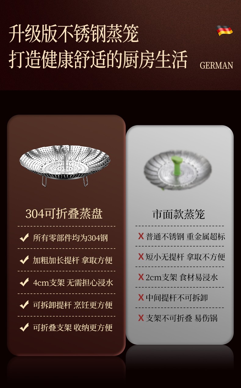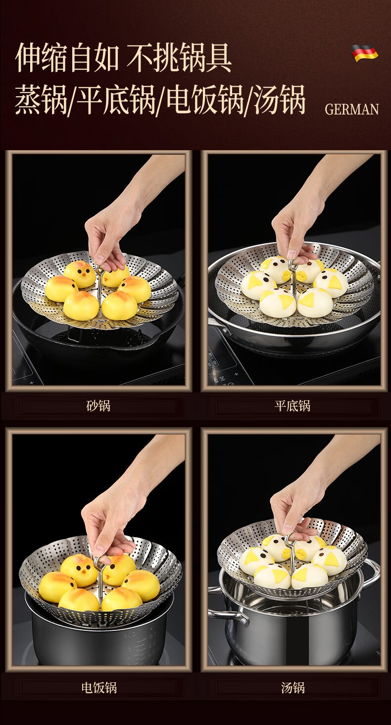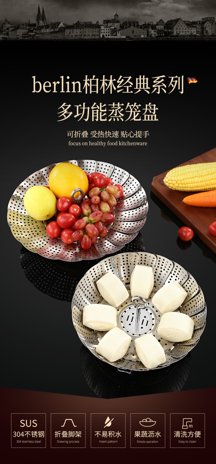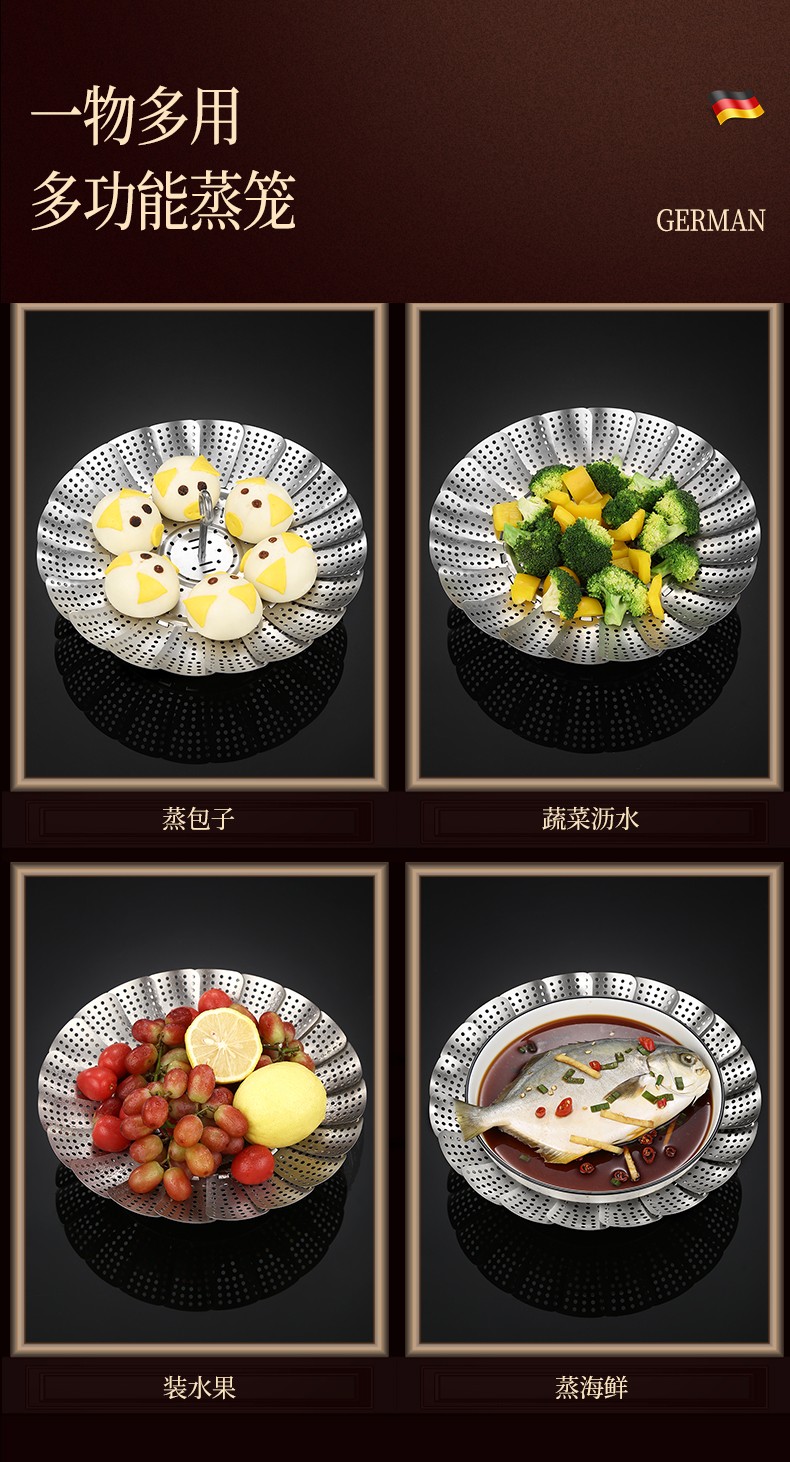 Bomans steamer, food grade 304 stainless steel folding steaming rack, steaming tray, steaming grid, household multifunctional water-proof steamer, steaming vegetable rack, 304 stainless steel steamer, medium size