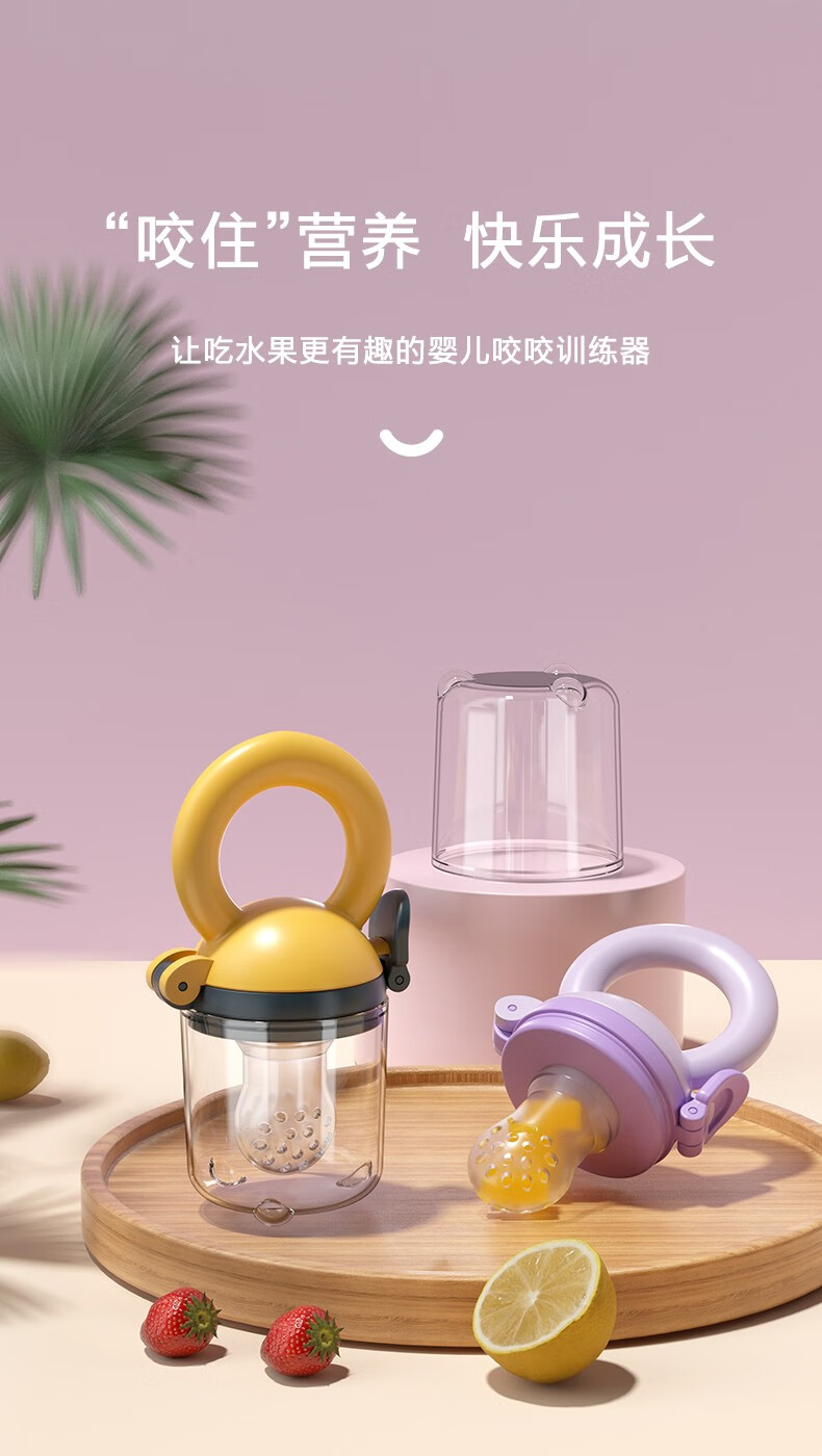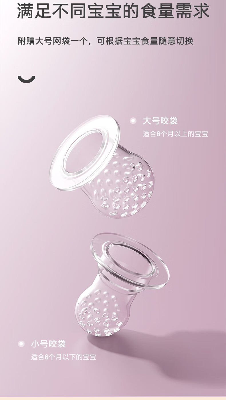 Evorie Fruit Bites for babies over 6 months old, push-type soothing molar silicone bite bags for babies during the oral period, purple (two bite bags, big and small), 1 pack