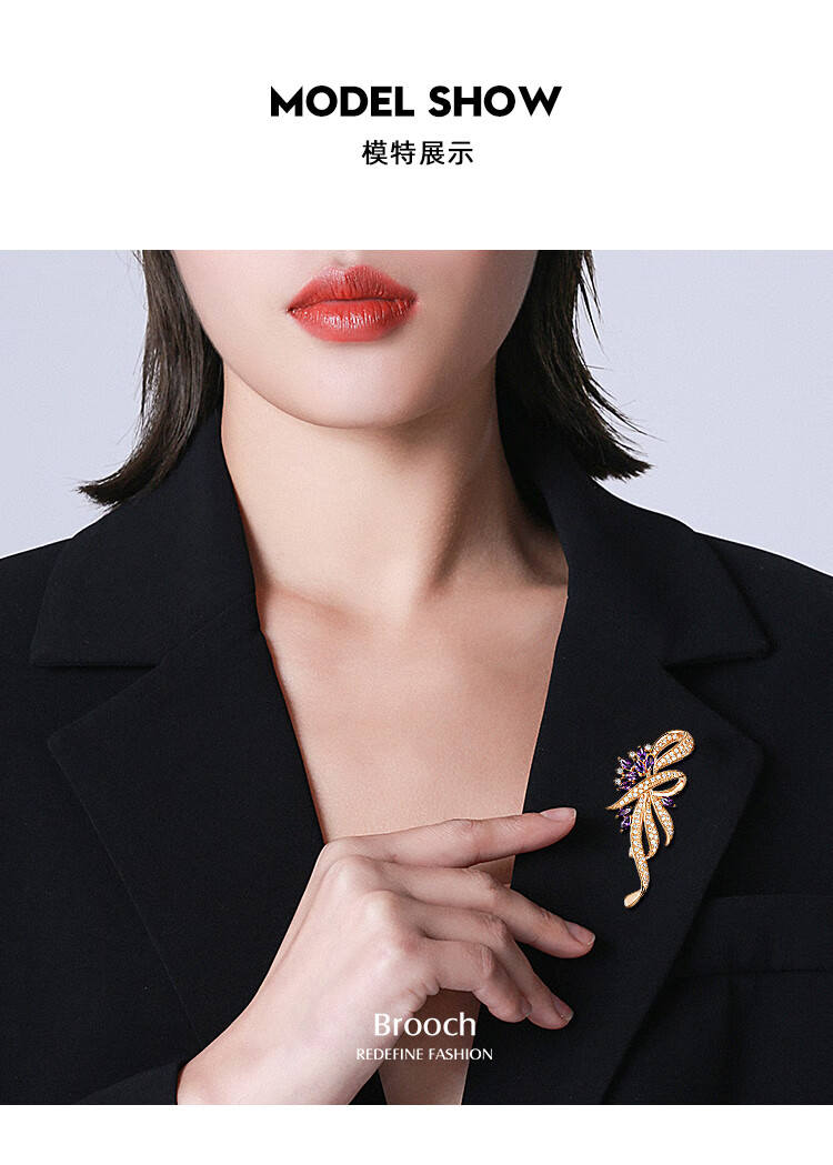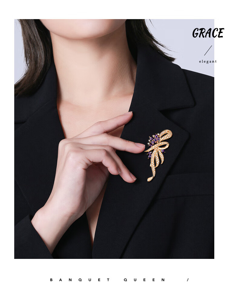 Chakra flower corsage brooch, high-end women's brand temperament, anti-exposure suit accessories, Mother's Day gift for mom, white gold