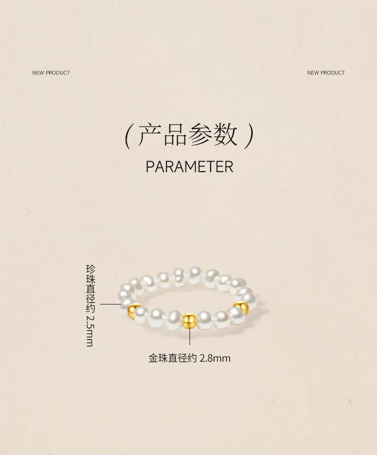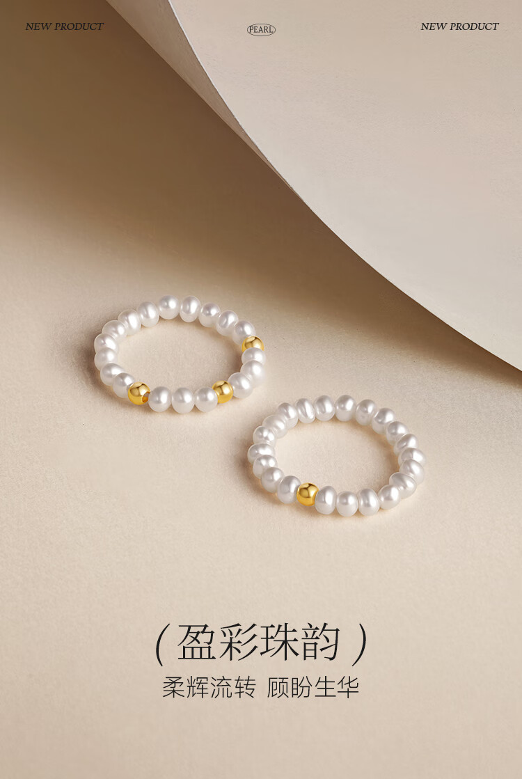 Saturday Fortune (ZLF) yellow 18K gold freshwater pearl ring for women, exquisite small gold beaded bracelets as a gift for your girlfriend, classic style