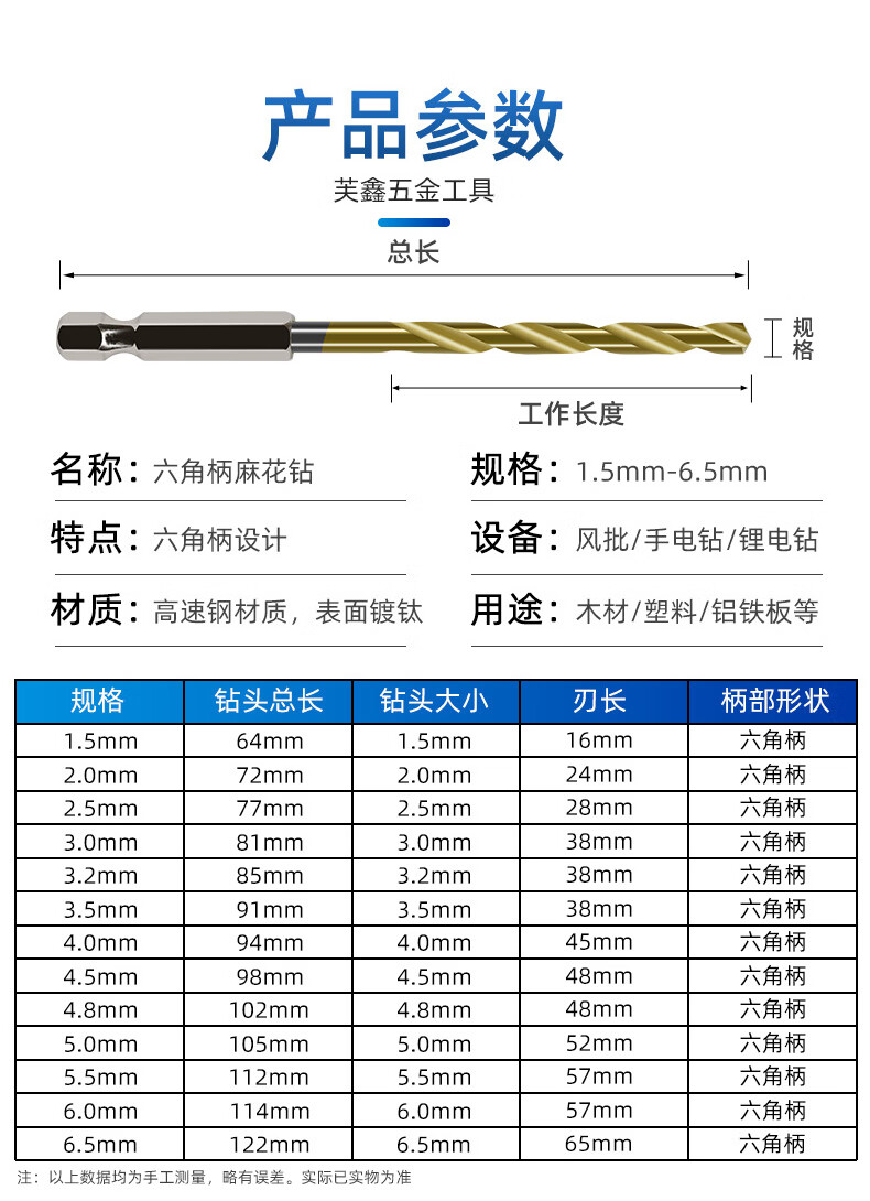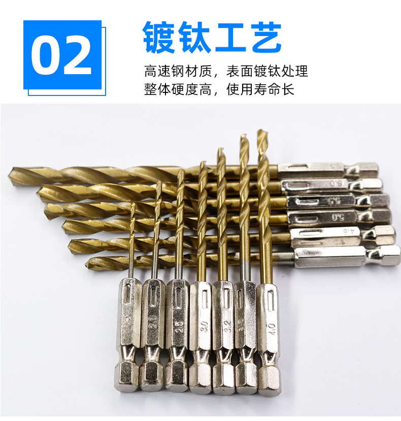 MLHJ handle twist drill set hexagonal handle twist drill bit 6.35mm electric screwdriver pneumatic air batch inner hexagonal drill bit 13-piece set hexagonal handle (1.5mm-6.5mm)