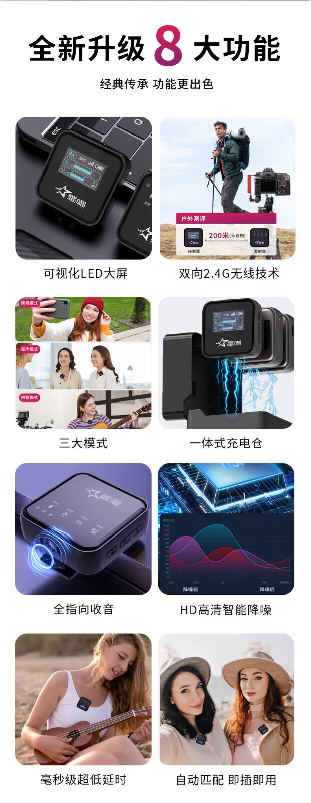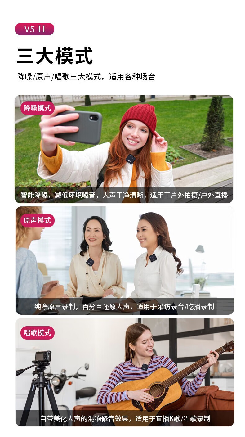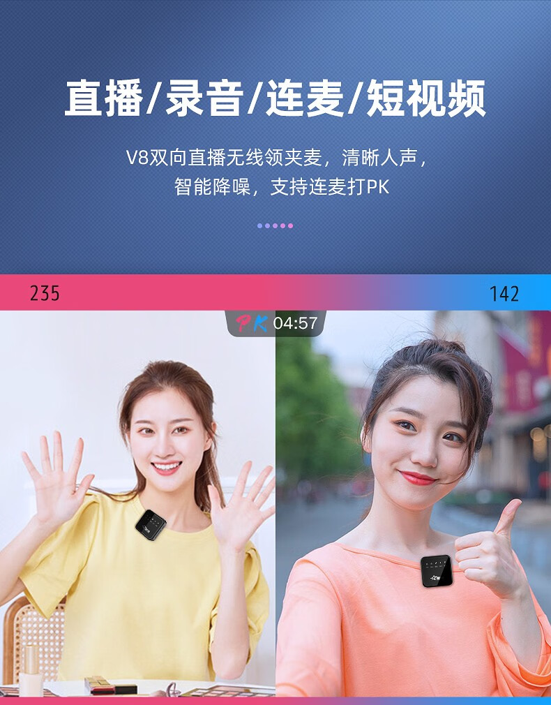Xingshang V8 Wireless Lavalier Microphone Radio Wheat Bee Recording Equipment Lavalier Bluetooth Accompaniment Built-in Sound Card Outdoor Interview Noise Reduction Anchor Wireless Live Broadcast Microphone Xingsang V8 One to One (Apple + Android Universal) Official Standard