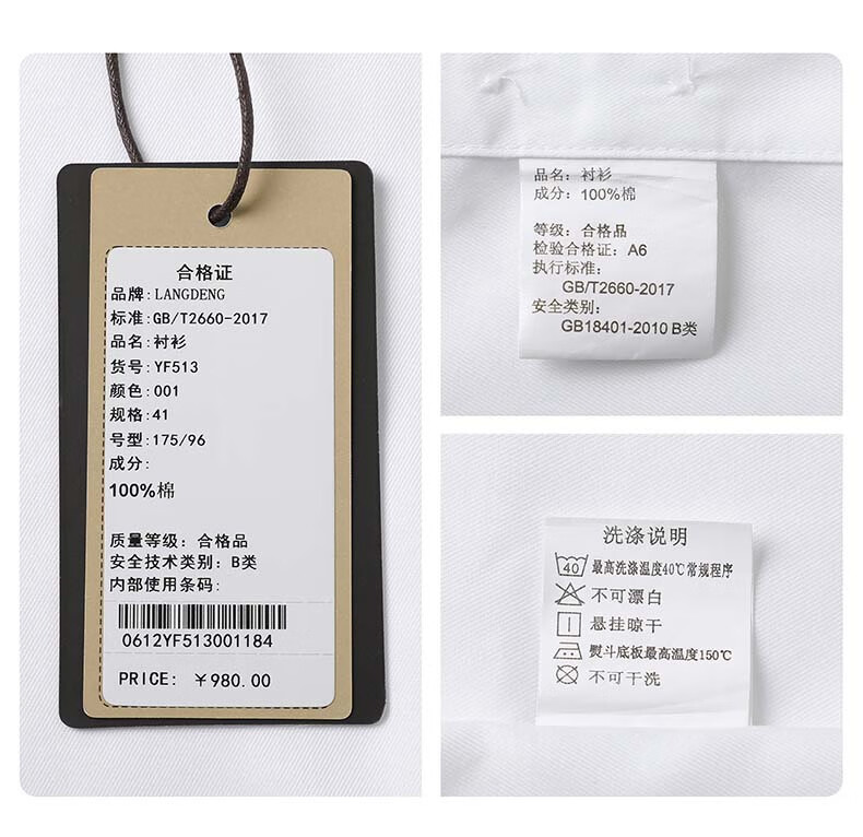 Langdeng white shirt men's long-sleeved pure cotton business formal wear pure cotton professional autumn micro-elastic anti-wrinkle shirt white 42