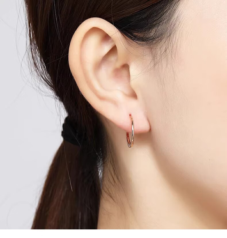 Trendy Acer ring 18K gold stud earrings for women, rose gold color gold earrings, fashionable and simple, birthday gift for girlfriend, single style