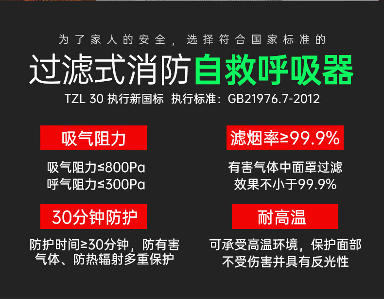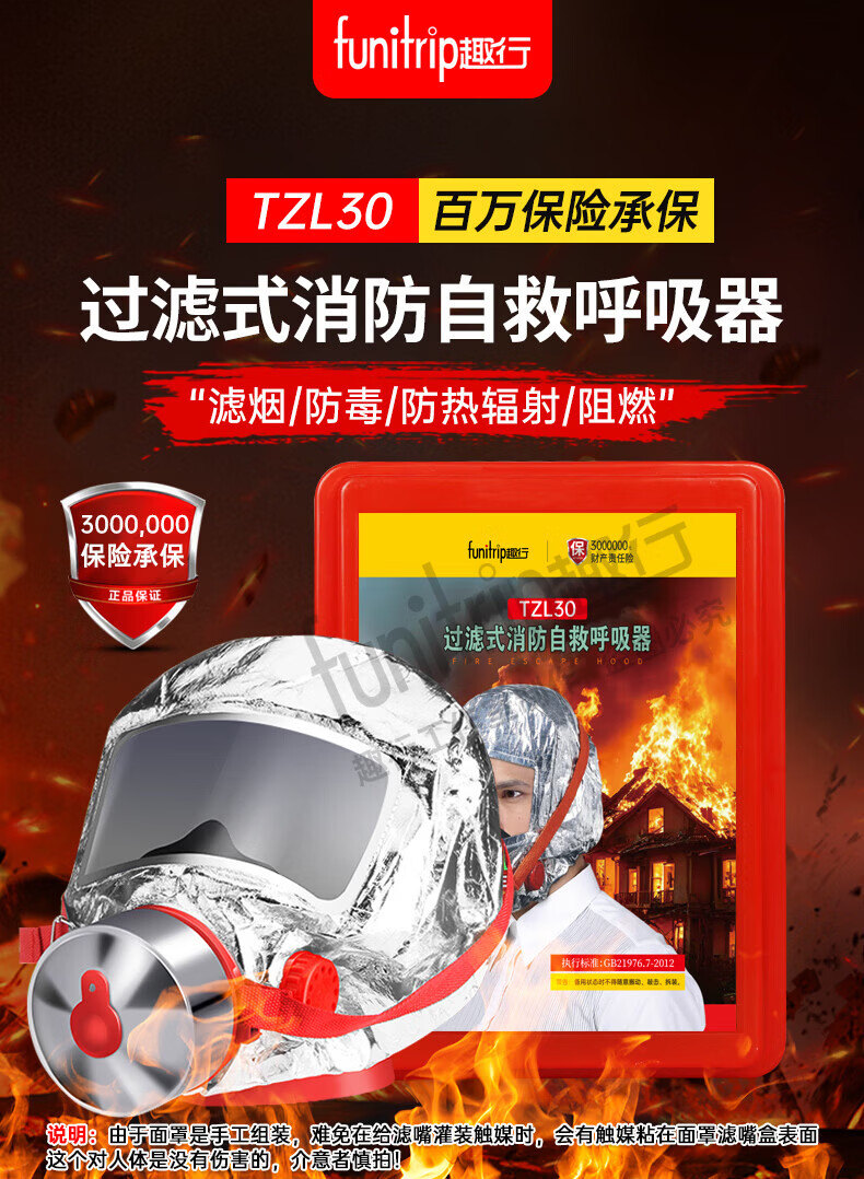Quxing fire mask anti-smoke and gas mask hotel national standard 3C certified household fire escape self-rescue respirator national standard 3C fire certified fire mask
