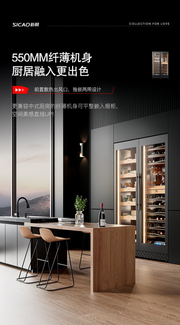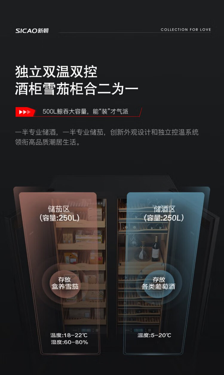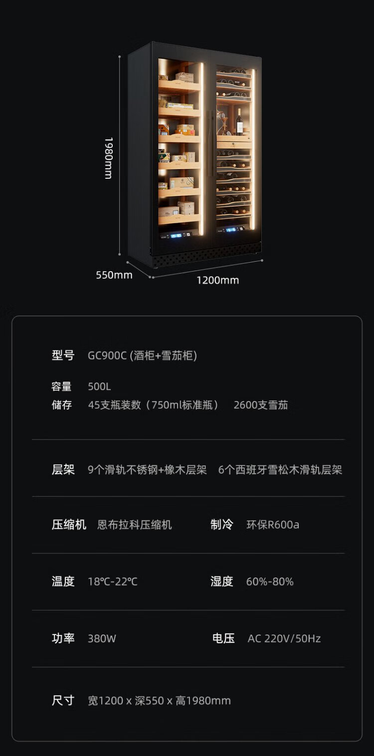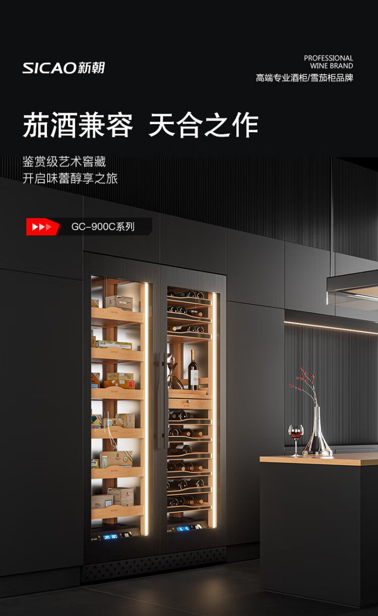 Xinchao (SICAO) red wine cabinet with constant temperature and humidity for home high-end custom villa commercial reception bar KTV storage beverage liquor wine home cellar display cabinet 900 GC900C wine cabinet + cigar cabinet 500L