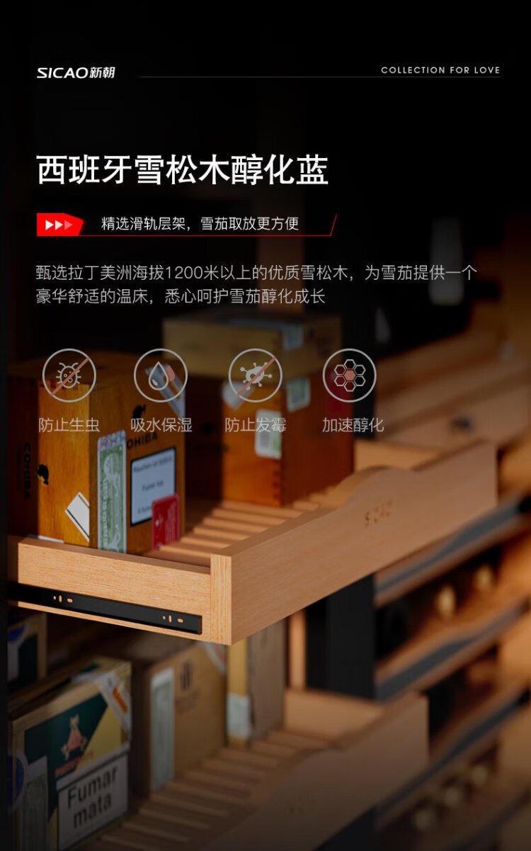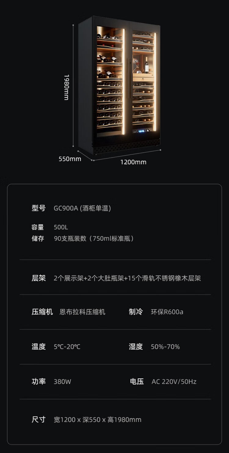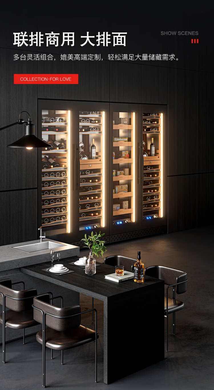 Xinchao (SICAO) red wine cabinet with constant temperature and humidity for home high-end custom villa commercial reception bar KTV storage beverage liquor wine home cellar display cabinet 900 GC900C wine cabinet + cigar cabinet 500L