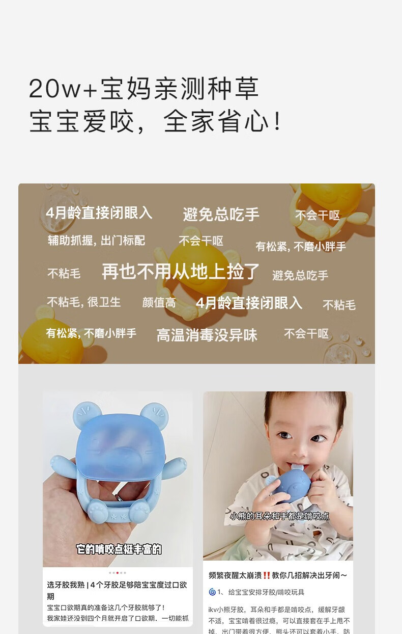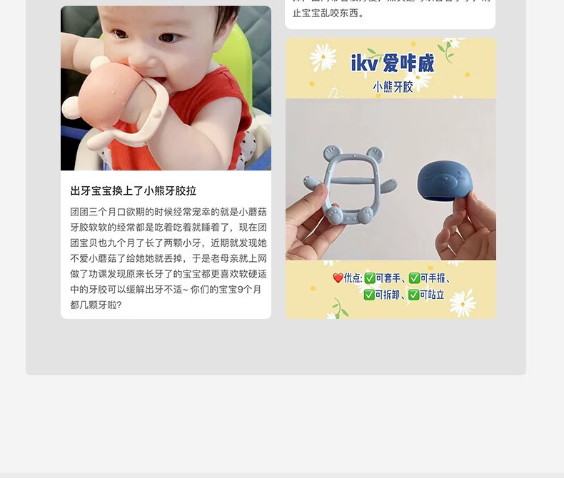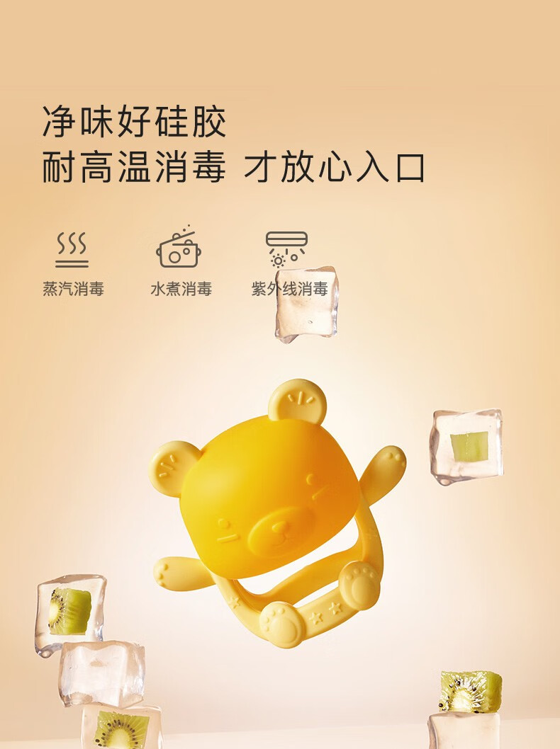 IKV Bear Teether for Baby, Silicone Anti-baby Bite, Poachable and Storage Box, Bear Teether - Pink