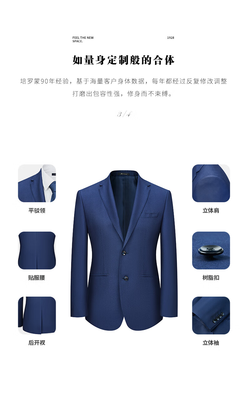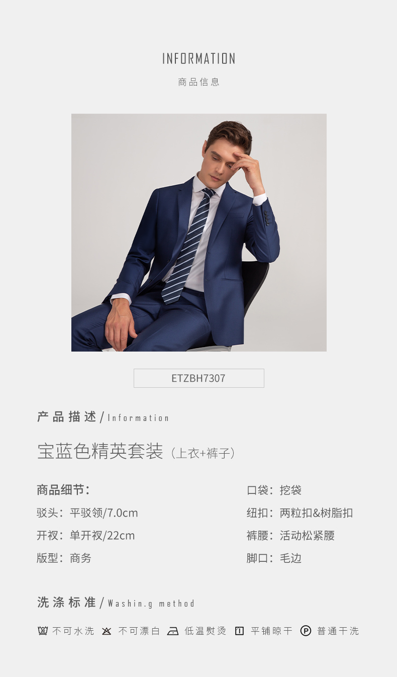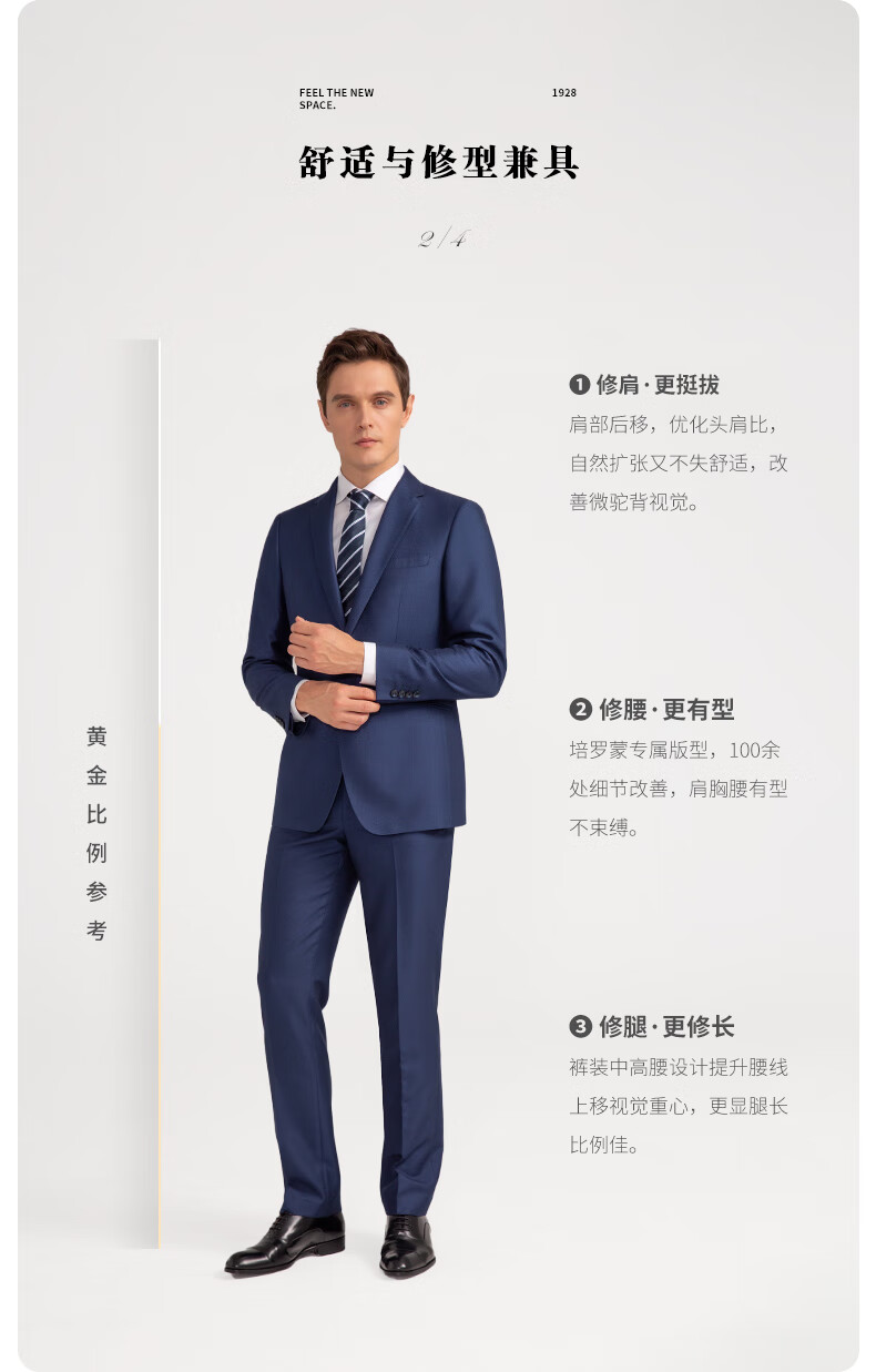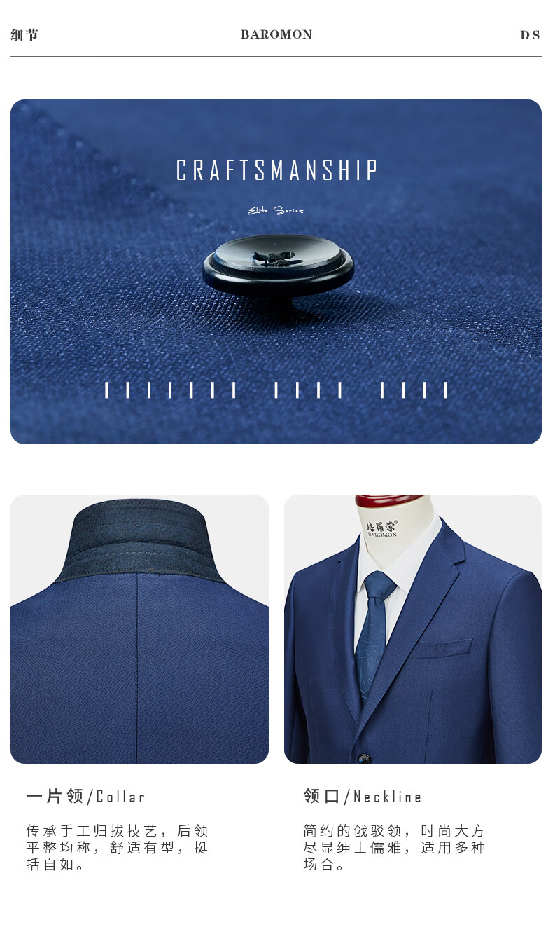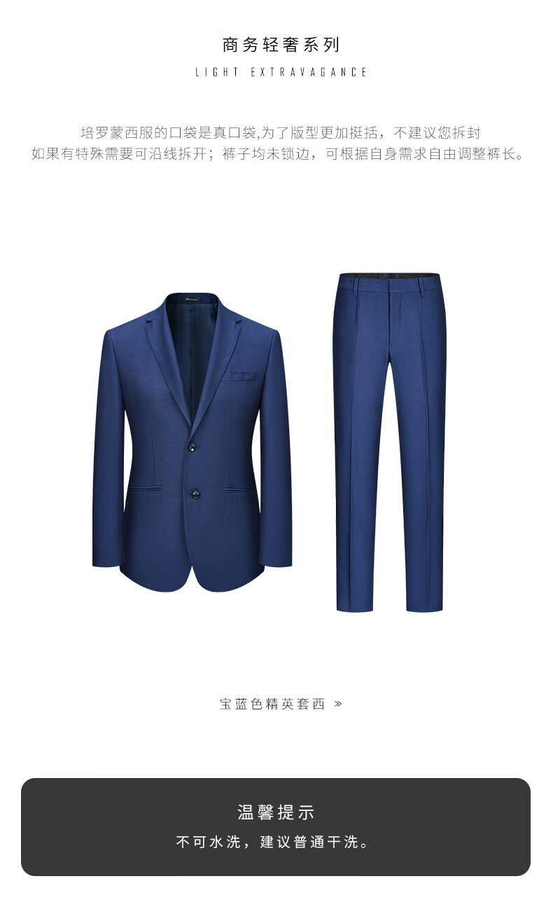 BAROMON anti-wrinkle and iron-free suit suit for men, business light formal wear, groomsman for work, blue suit for wedding and groom, version A, slim version 175A, please note the size of the trousers
