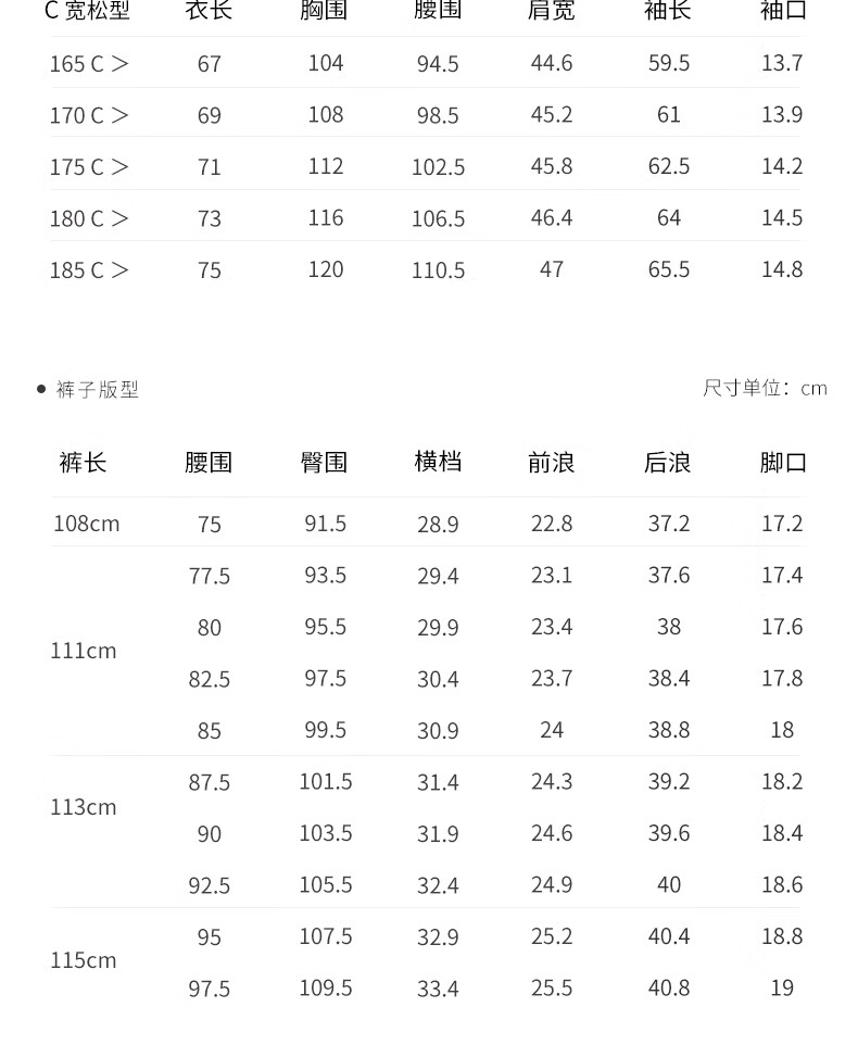 China (cm) 160-165/84-86 165-170 / 88-90 167-172 / 92-96 168-173 / 98-102 170-176 / 106-110