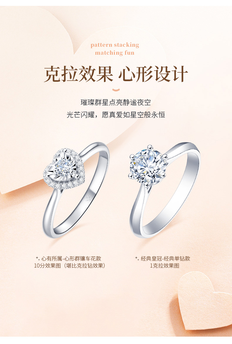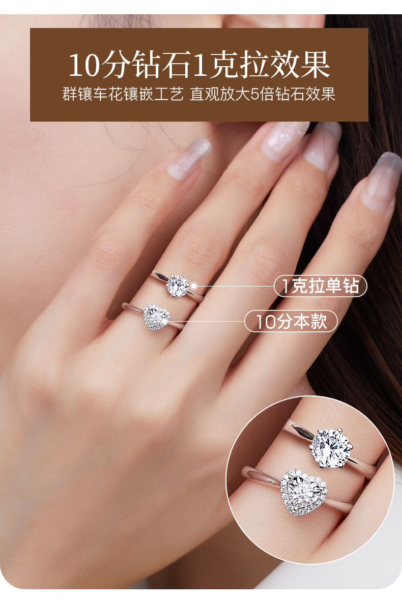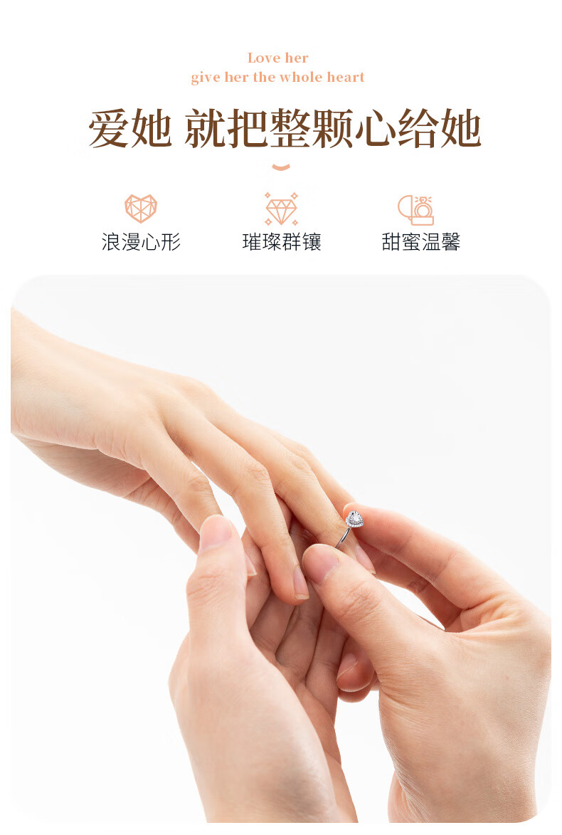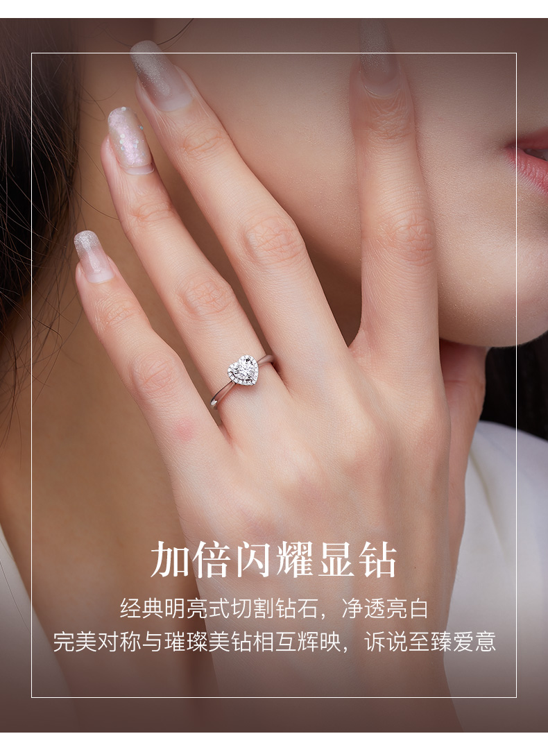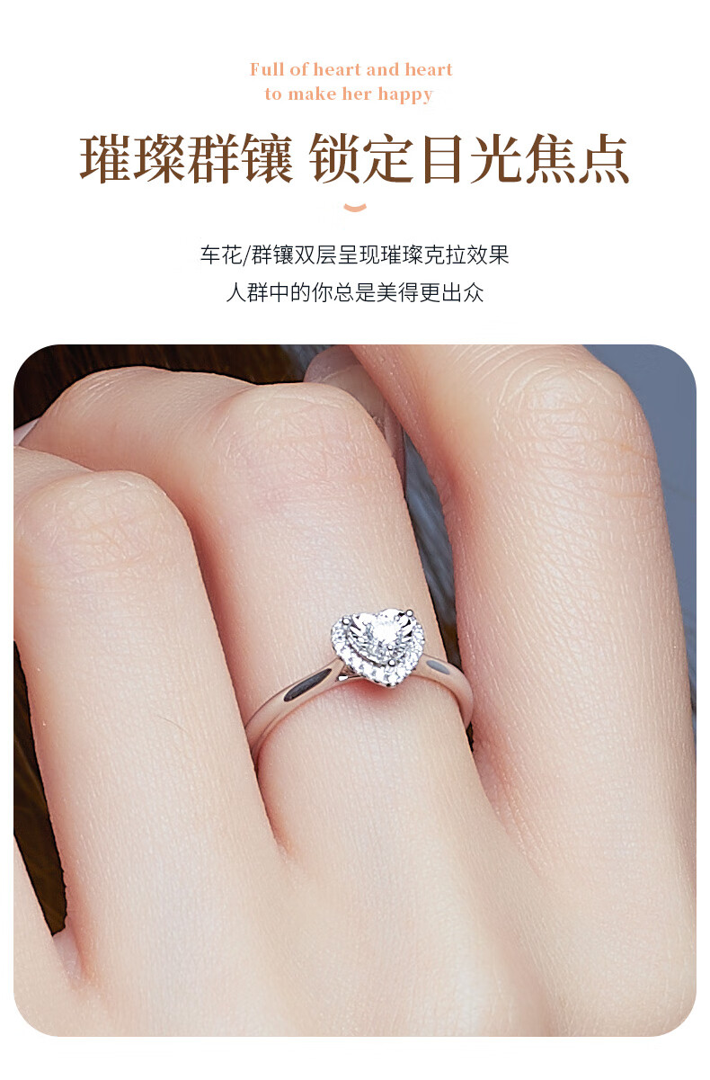 Chow Pak Fook Heart Shaped Diamond Ring 18K Gold Diamond Ring Diamond Ring Female Proposal Ring Shows Big Flowers Shows Diamonds Fashionable Heart Shape White 18K Gold Diamond Ring Total Approximately 16 Points FG Color VS
