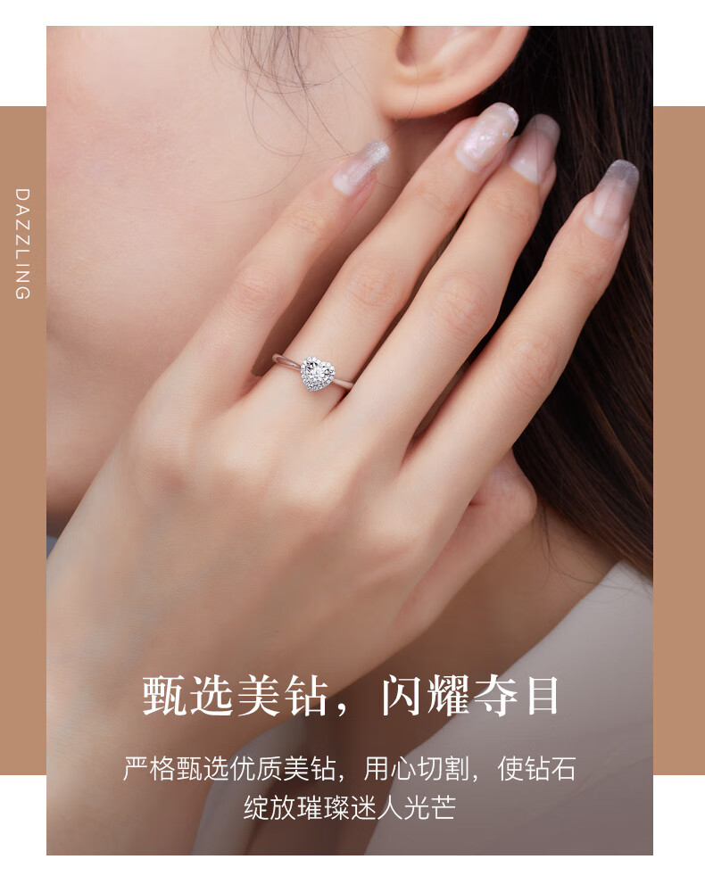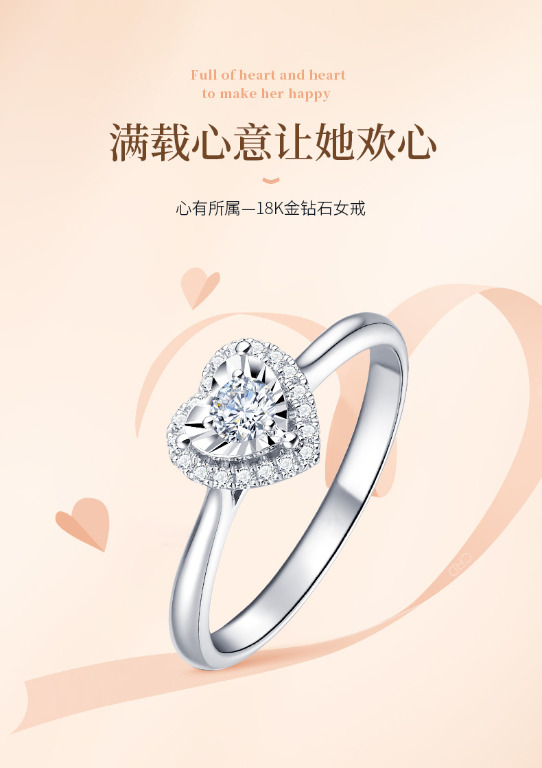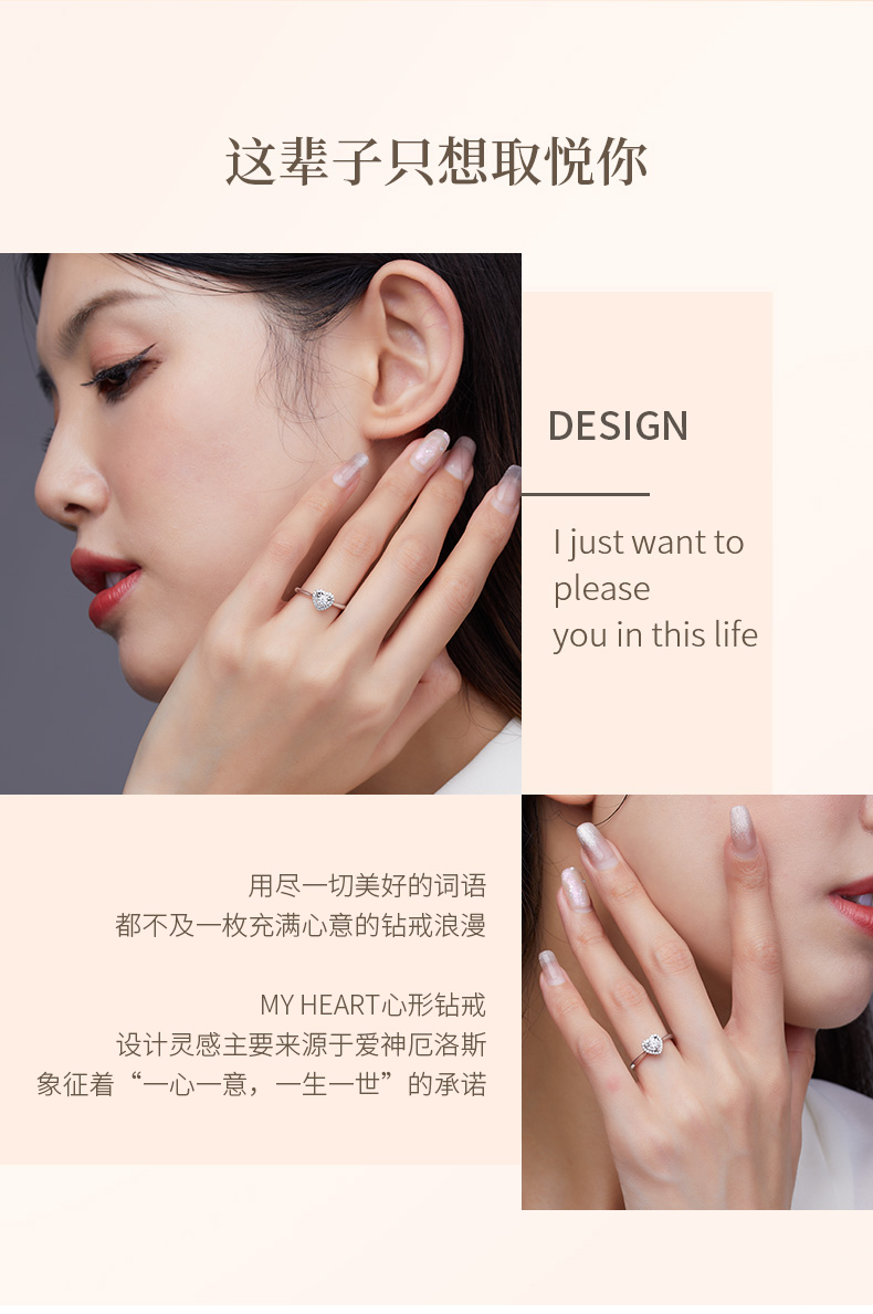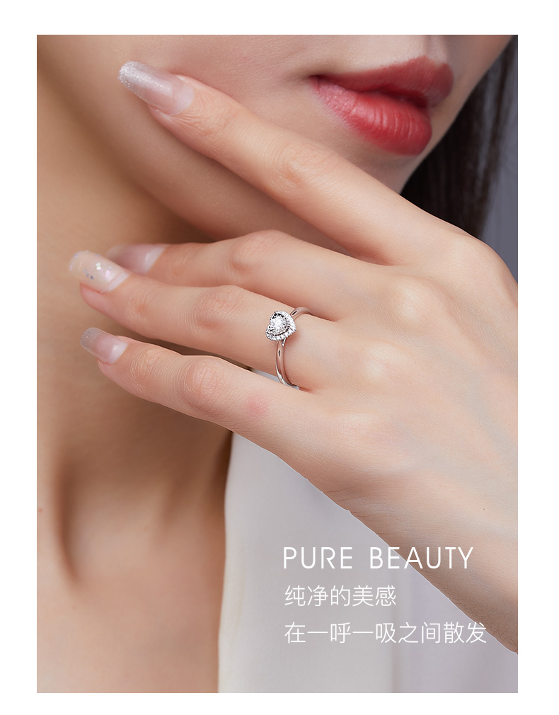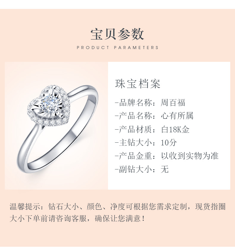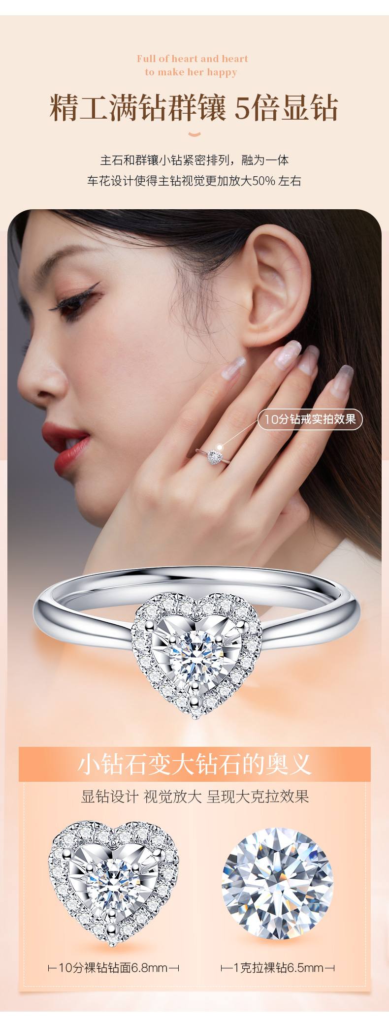 Chow Pak Fook Heart Shaped Diamond Ring 18K Gold Diamond Ring Diamond Ring Female Proposal Ring Shows Big Flowers Shows Diamonds Fashionable Heart Shape White 18K Gold Diamond Ring Total Approximately 16 Points FG Color VS