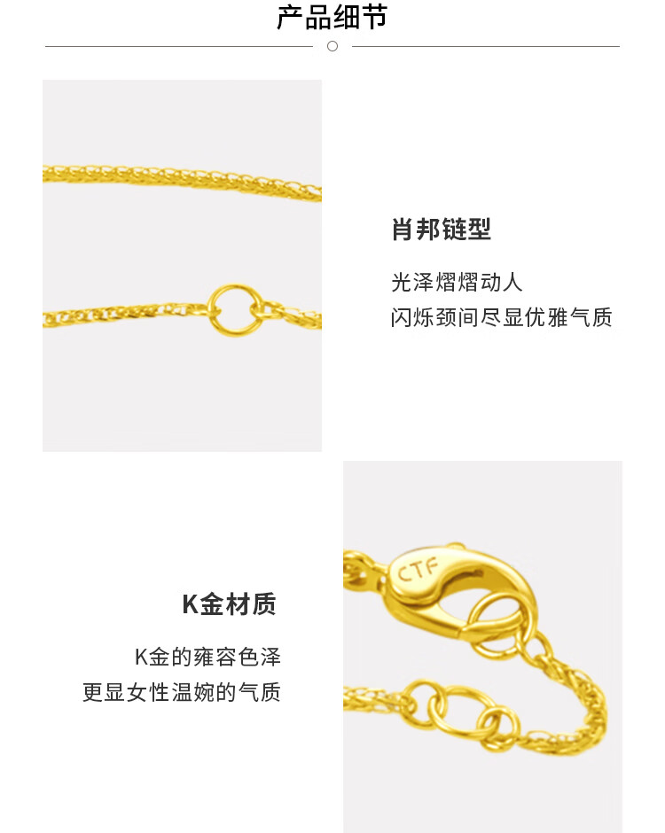 Chow Tai Fook Classic Chopard Chain Plain Chain 18K Gold Necklace E126854 Birthday Gift 40cm