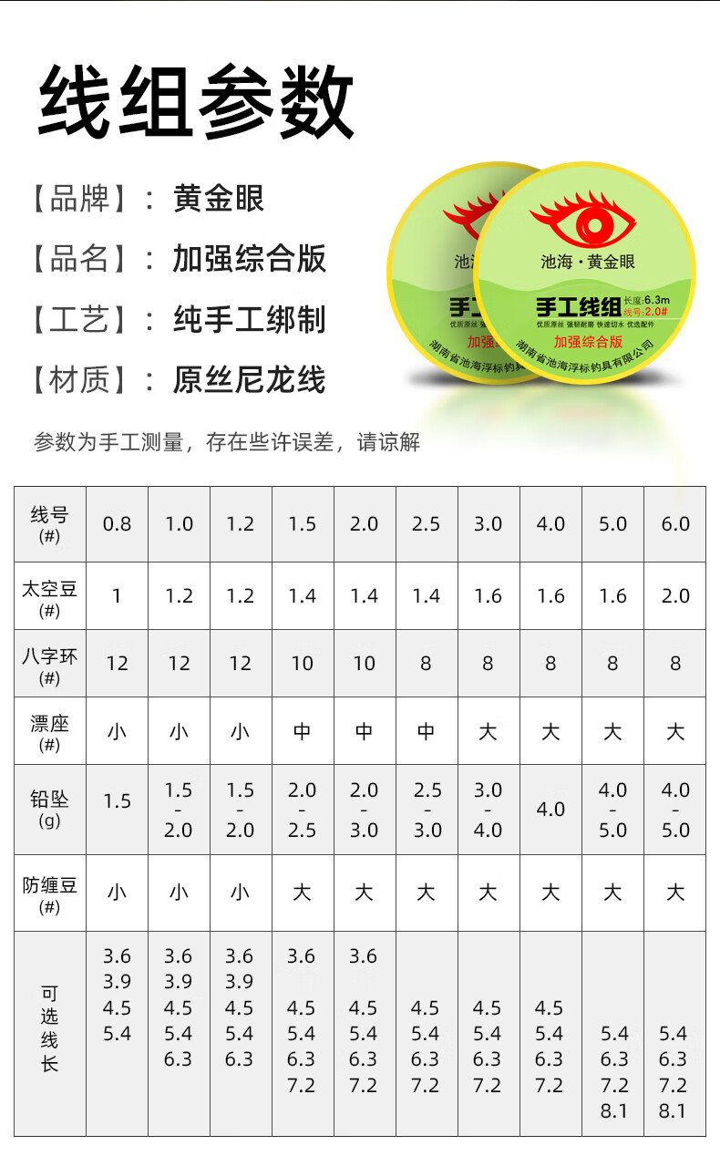 Golden Eye's new fine-tied line set fishing line set, a complete set of Taiwan fishing super strong tension tied fishing gear, finished large object main line set Golden Eye - strong line set 3.6 meters, 0.8 size per roll