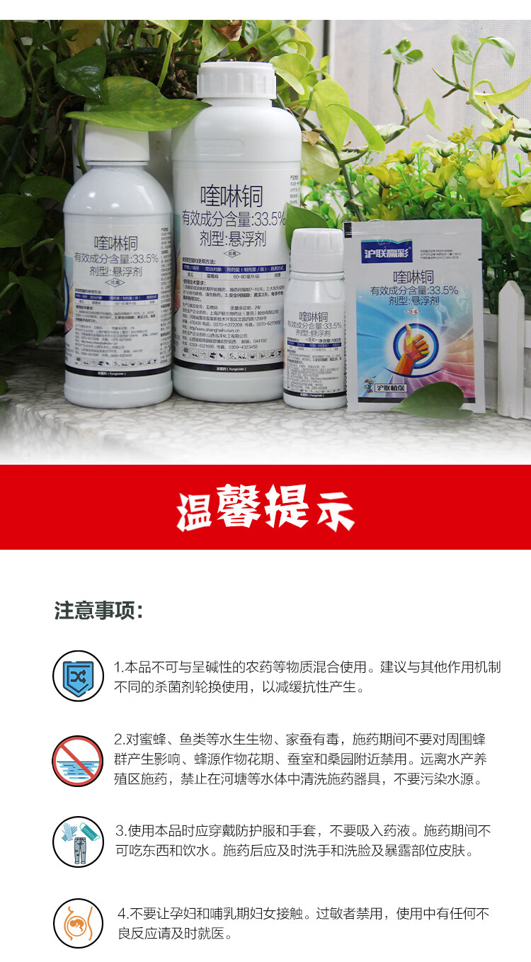 Hulian 33.5% quinoline copper fungal cucumber vegetable downy mildew organic copper pesticide fungicide 20g