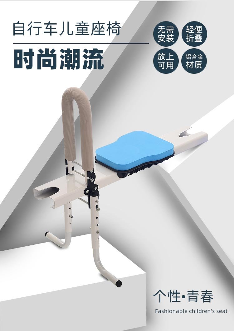 Pustar Shared Bicycle Child Seat Front-mounted Baby Safety Chair Free of Installation Public Bicycle Folding Portable Seat Plate Aluminum Alloy Just Put It on Single Seat + Pedal + Handle - Blue