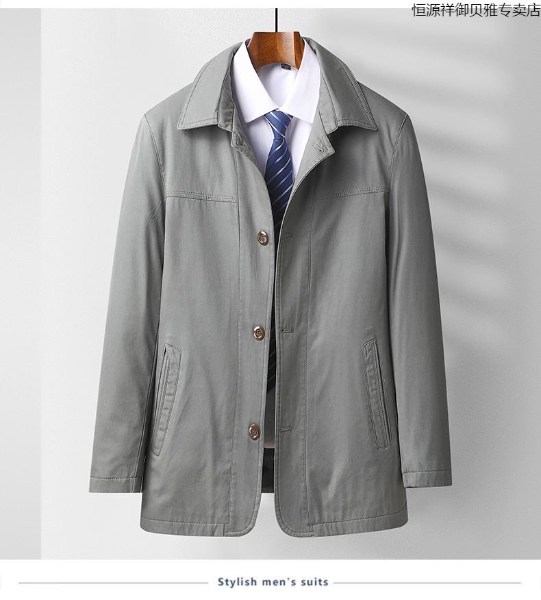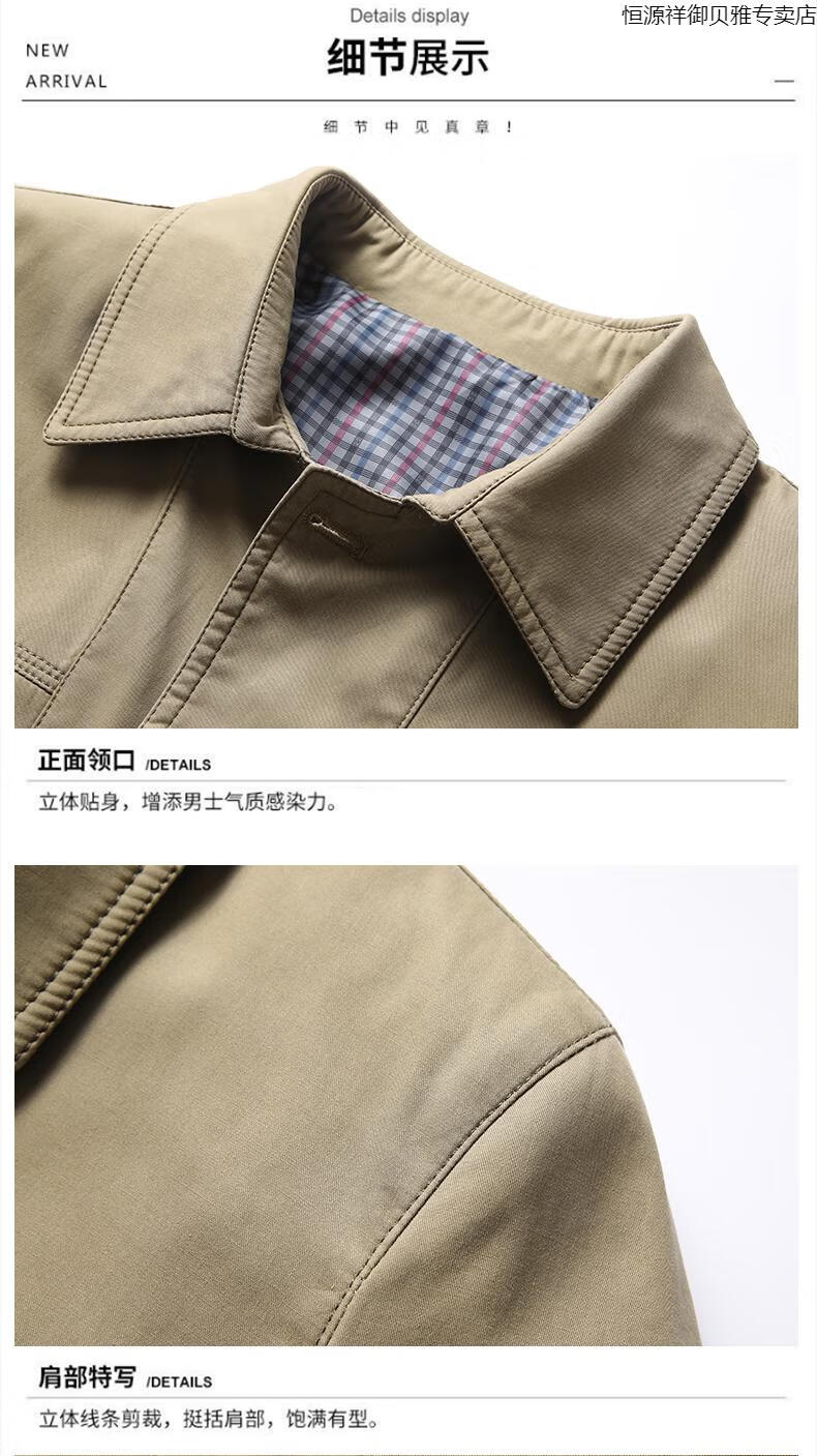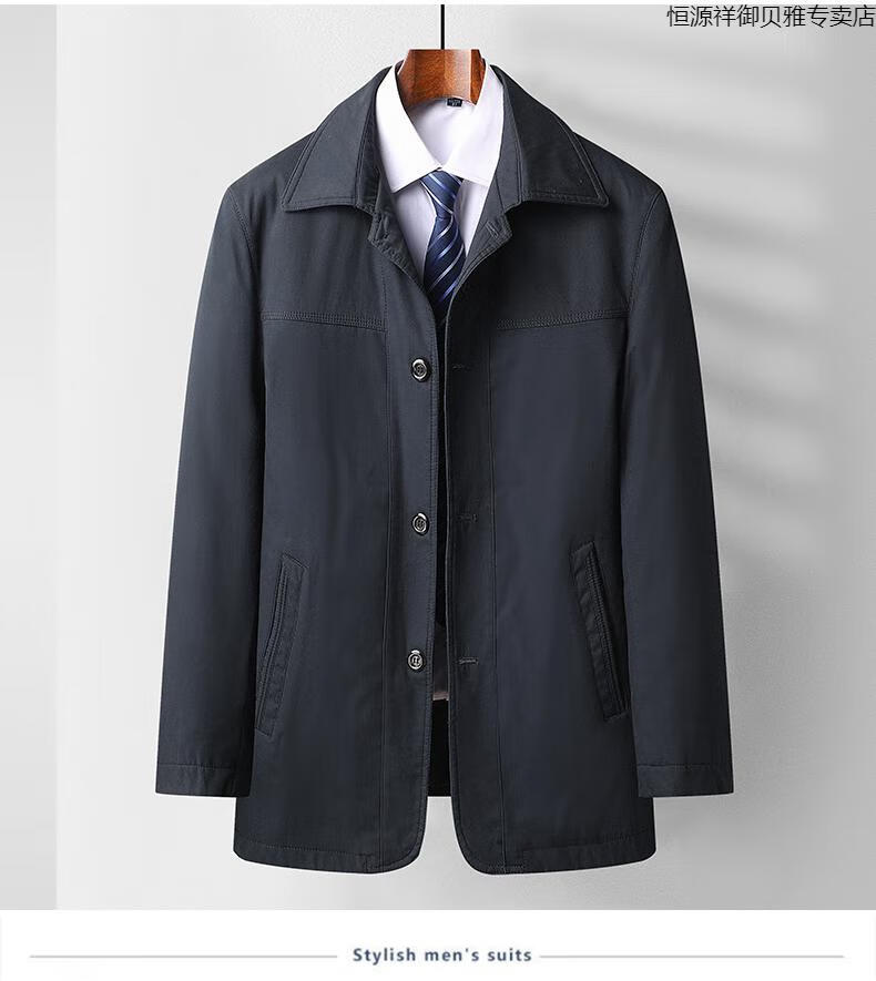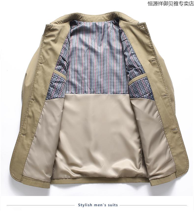 Hengyuanxiang men's windbreaker middle-aged men's windbreaker short pure cotton casual 40 spring thin dad morning jacket 50 tops Navy JYL-A35 L 175