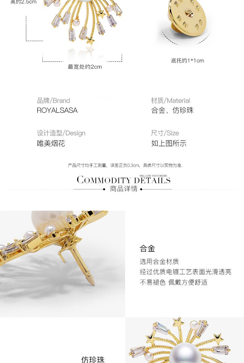 Royal sasa Japanese style fireworks brooch women's seam-free dress anti-exposure button shirt suit accessories collar button trendy