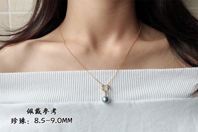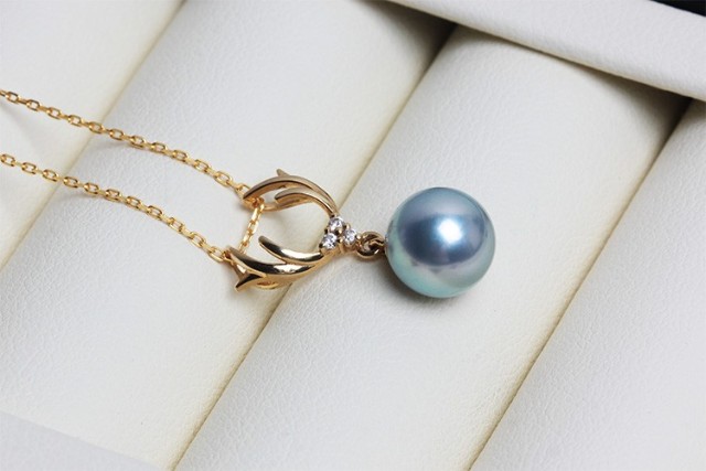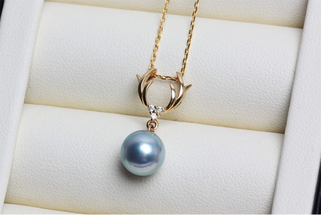 Dingying Japanese Akoya True Duoma Pearl Pendant Single Necklace for Women Extremely Strong Light Rare Silver Gray Translucent Blue-Green Light True Duoma Pendant (Zircon Style) (Excluding Chain) 7.5-8mm