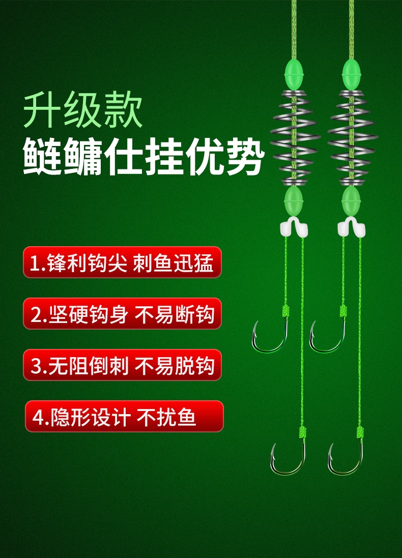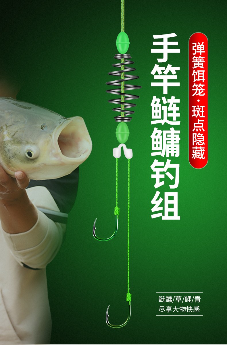 Xiaofengxian finished sub-line double hook tied up double hook fish hook tied up big fish silver carp and bighead carp fishing group Taiwan fishing silver carp and bighead carp finished hook fishing supplies silver carp and bighead carp fishing group 5 sets (coated PE line, small spring with anti-tangle beans) No. 8