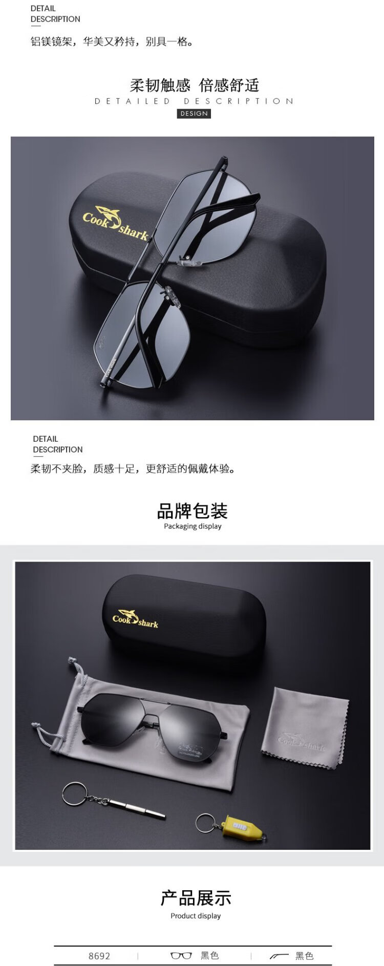 Cookshark Official Counter Polarized Sunglasses Men's Driving Glasses Special Color Changing Sunglasses Men's Summer Toad Glasses Gunmetal Color
