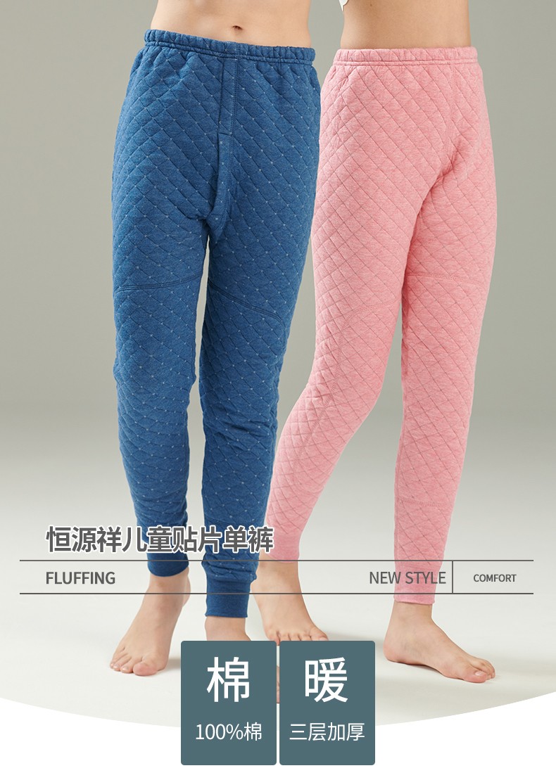 Hengyuanxiang Children's Warm Pants Pure Cotton Boys Middle and Large Children Primary School Three-Layer Cotton Patch Single Pants High Waist Girls Winter Cold Protection Warm Baby Thickened Cotton Pants Dark Blue 165 Recommended Height 160-165 Weight 85-95 Jin Jin is equal to 0.5 kg