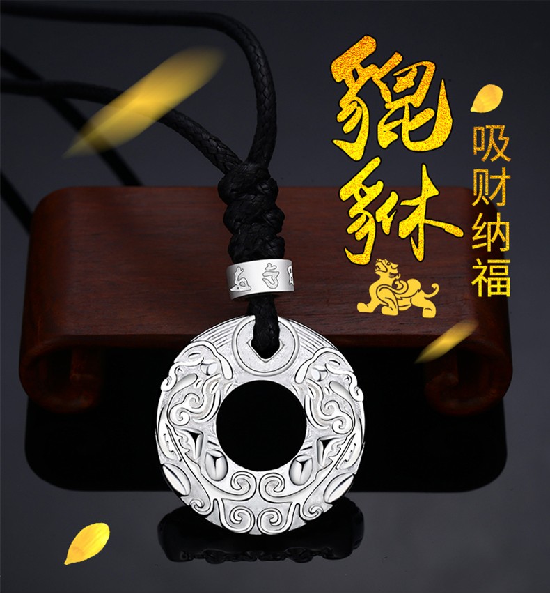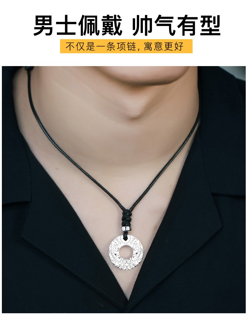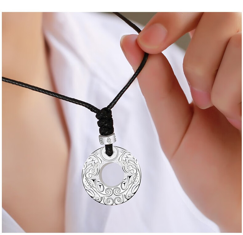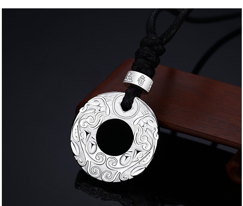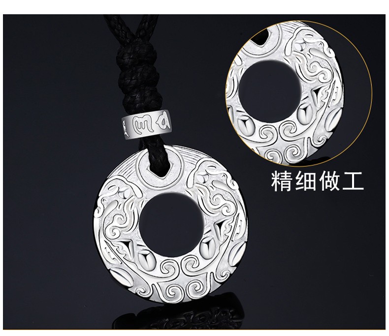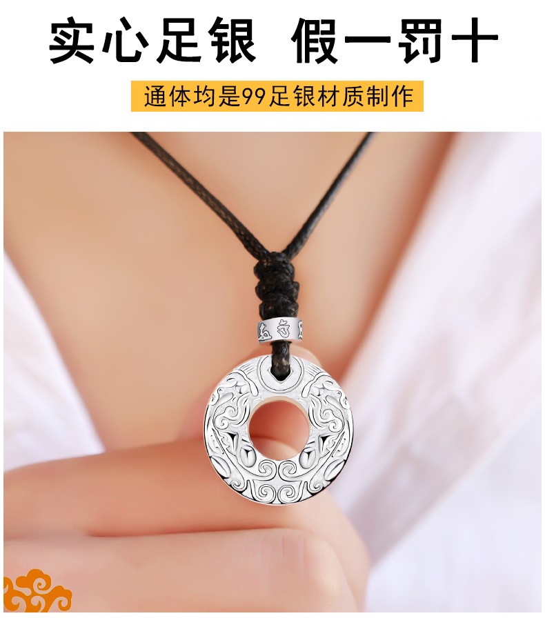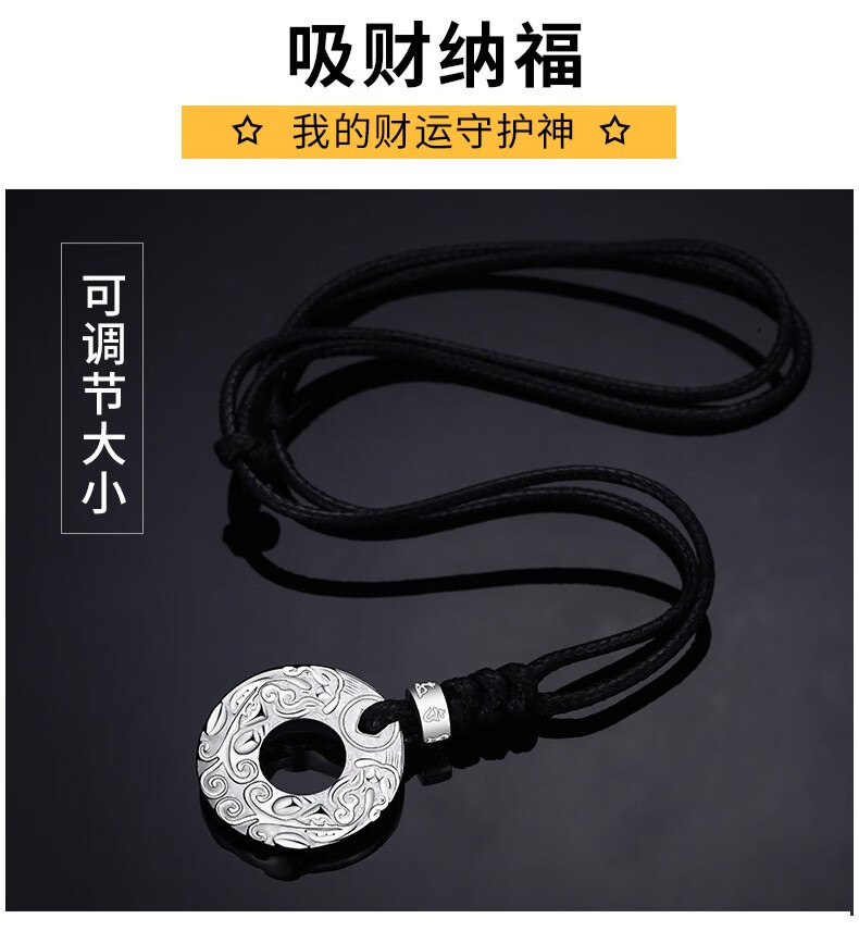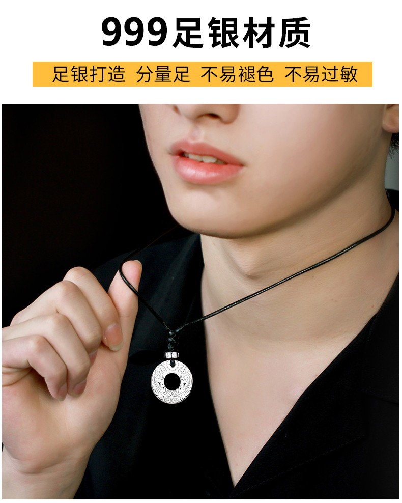 Jiuchangshi 999 sterling silver Pixiu pendant for men, pure silver solid six-character mantra necklace, safe buckle birthday gift for boyfriend, 999 pure silver, adjustable wax rope, large size, silver weight about 13g