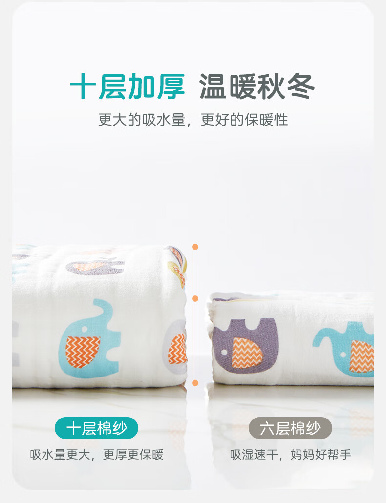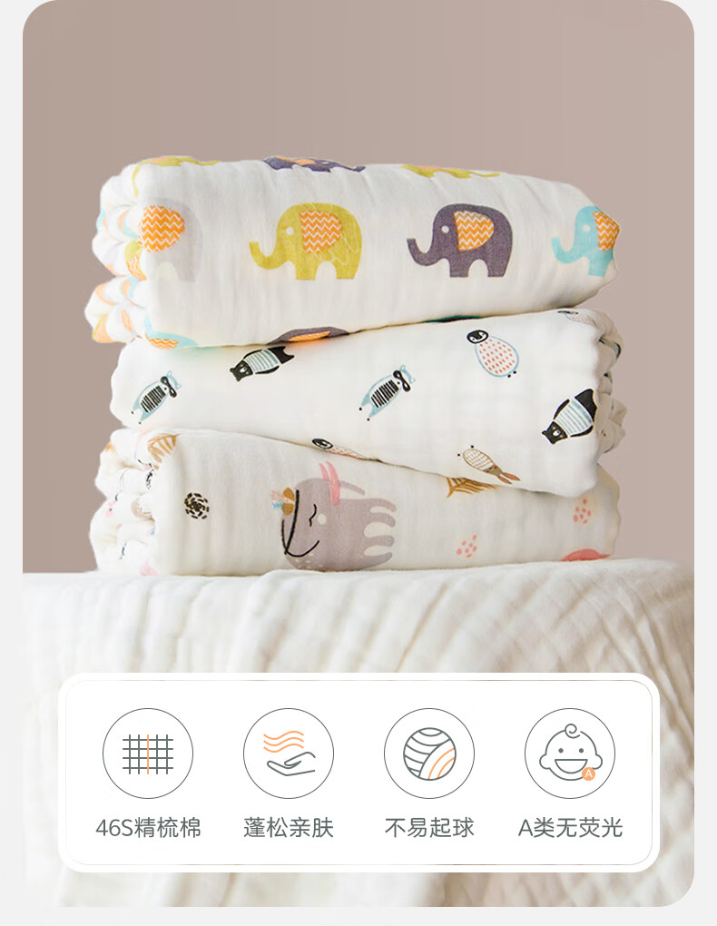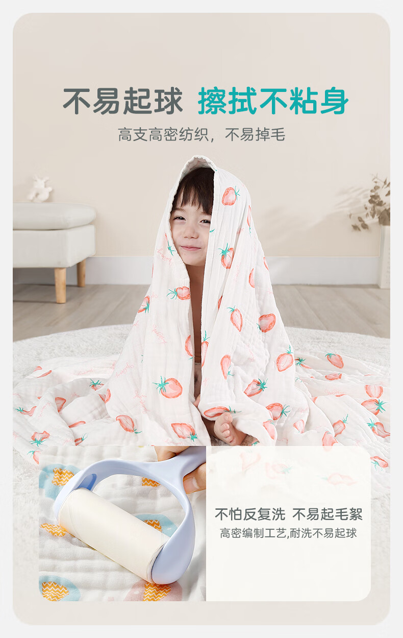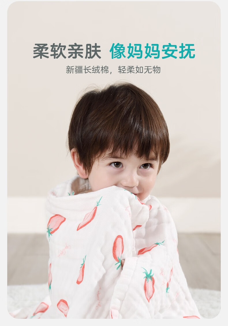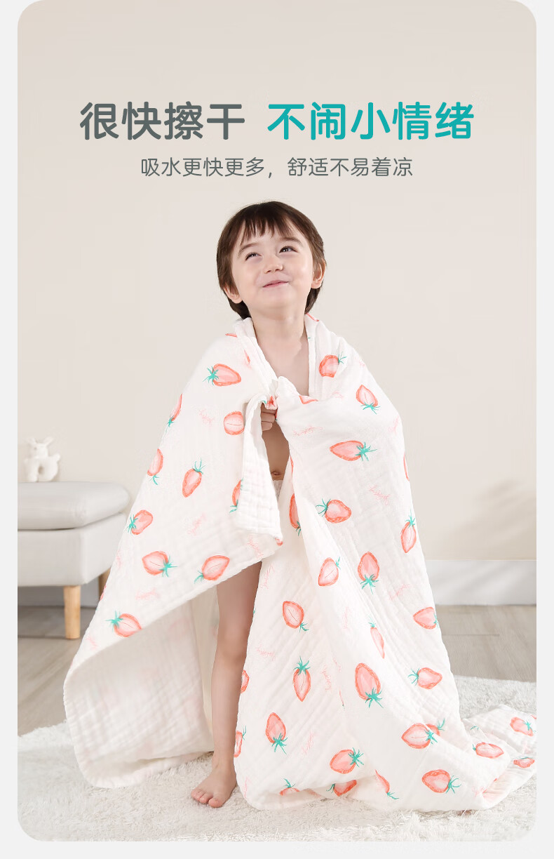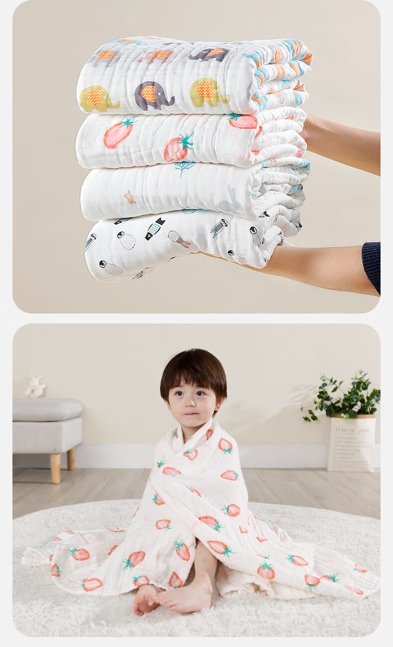 Youmeng 10-layer winter gauze bath towel thickened newborn child towel quilt pure cotton absorbent baby bath towel autumn style fresh strawberry (thick ten-layer gauze) 110*110cm (0-3 year old baby size)