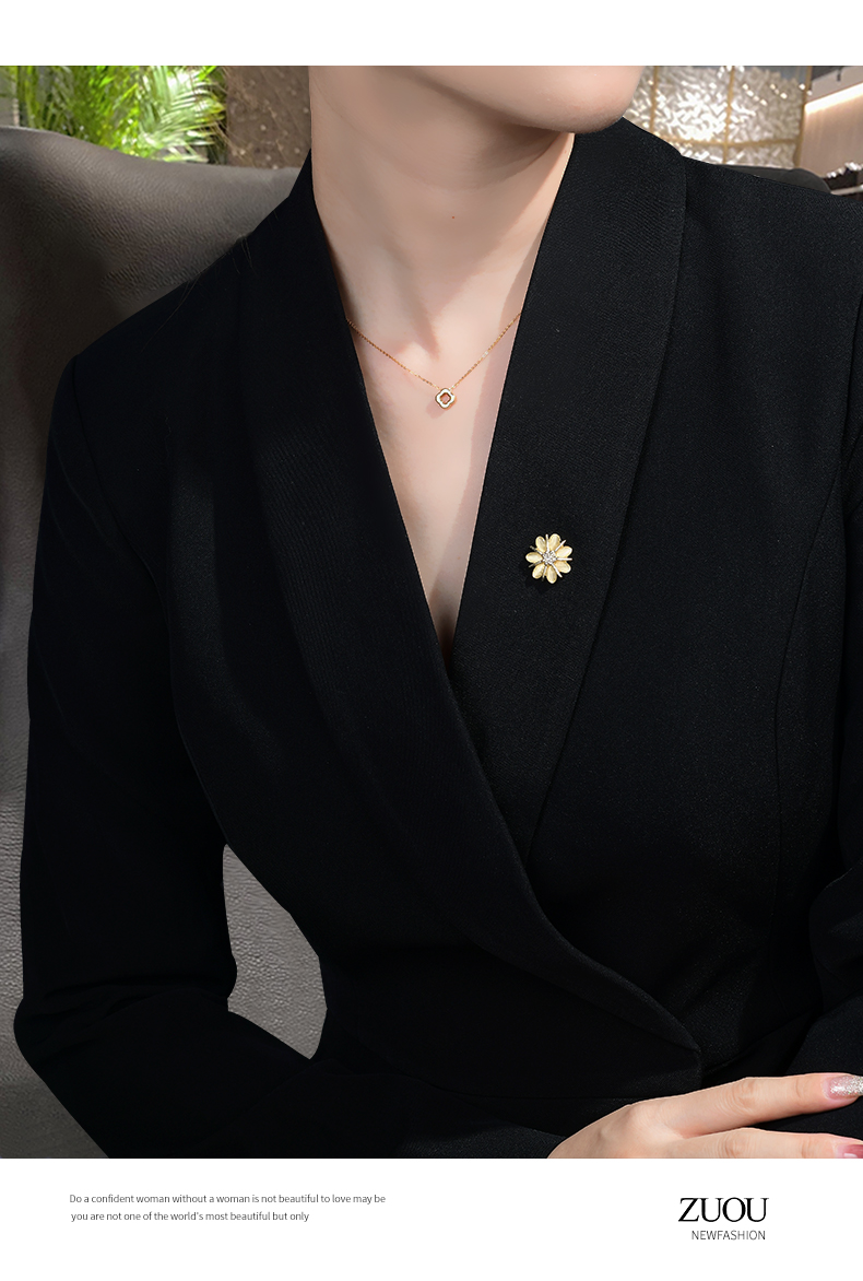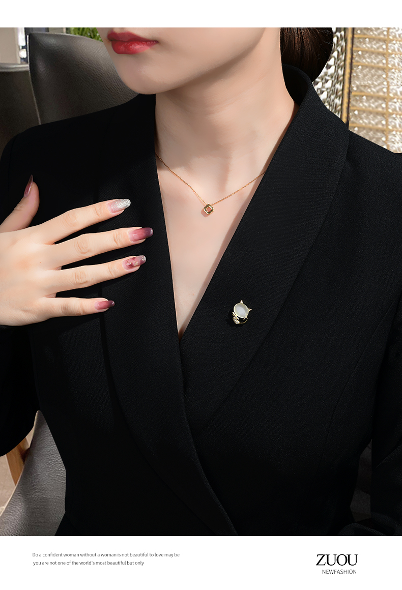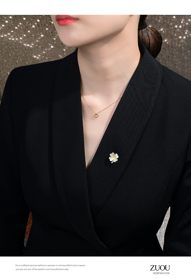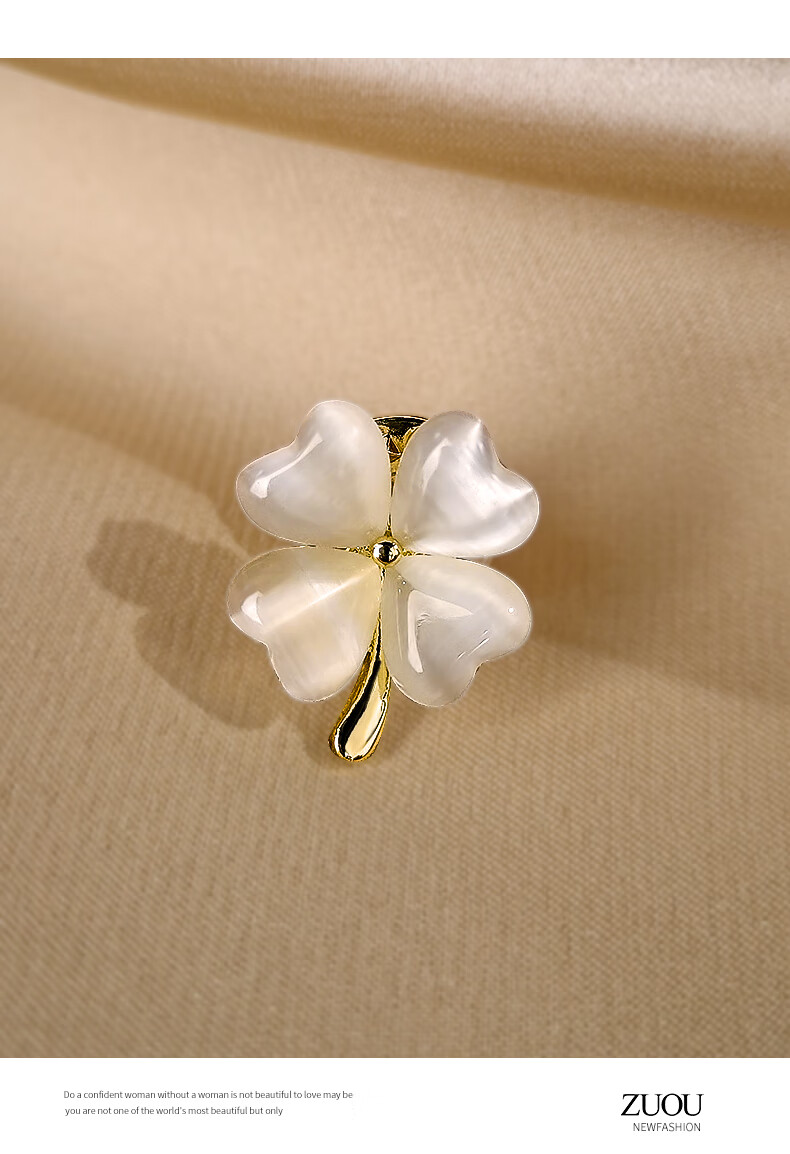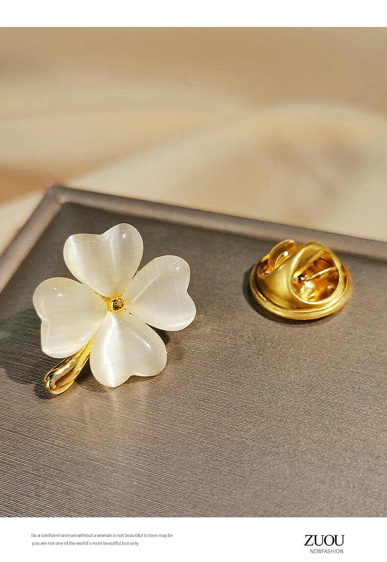 Zuoou anti-exposure corsage brooch for women, simple temperament, small pearl button, anti-exposure pin buckle, girl student collar pin, four-leaf clover