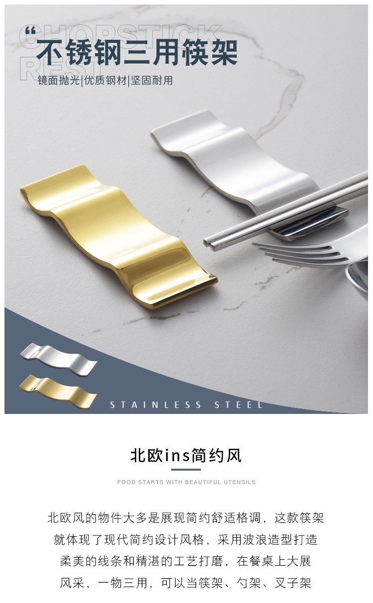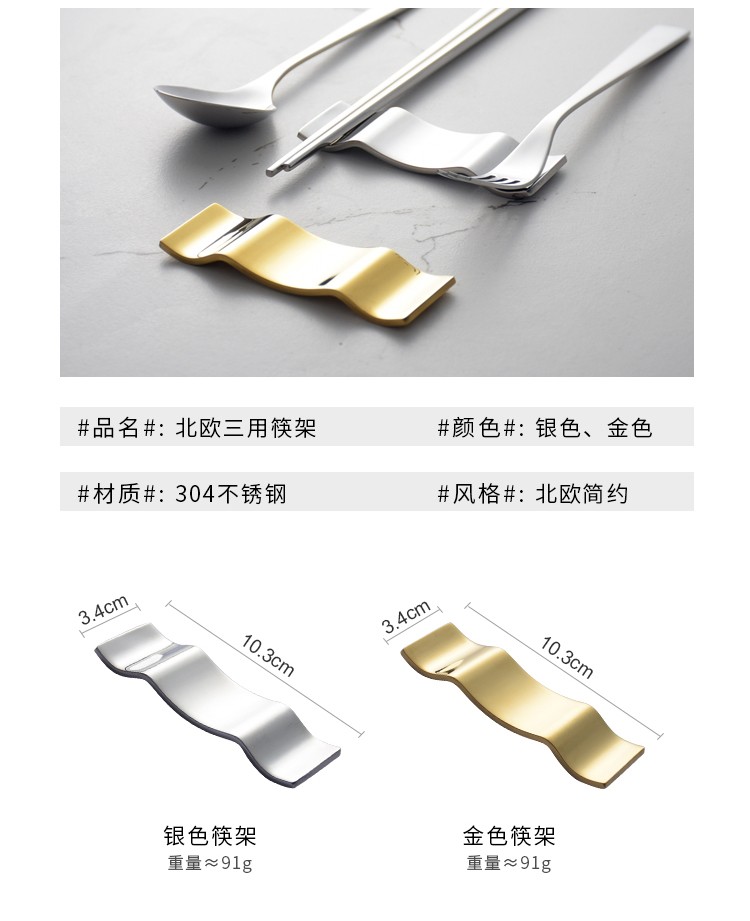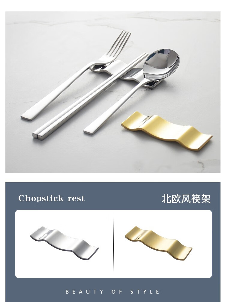 Oding Nordic ins mirror gold chopstick holder creative light luxury three-purpose chopstick holder spoon holder 304 stainless steel chopstick pillow silver