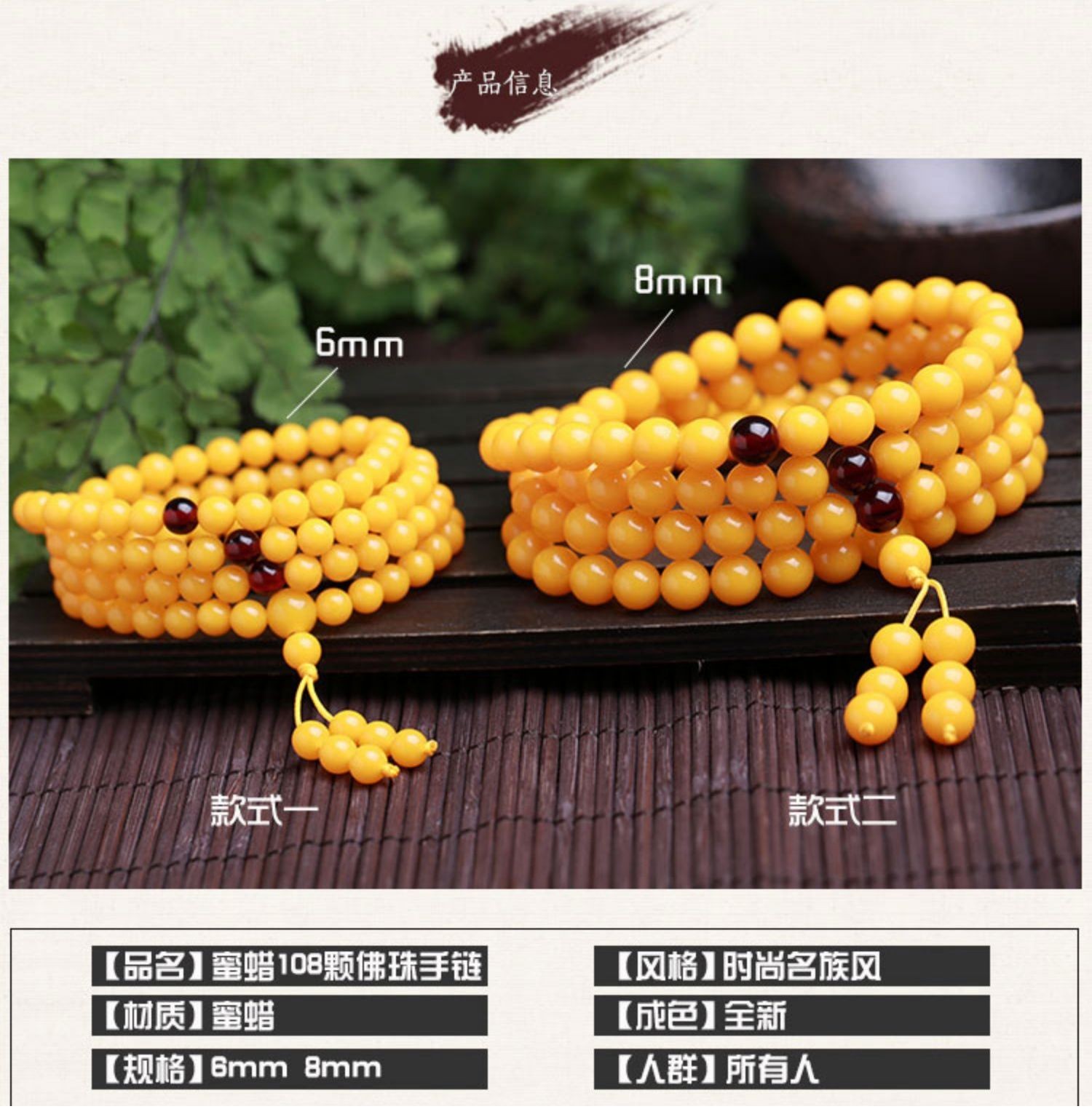 Dingying beeswax bracelet with 108 beads, natural chicken fat yellow old honey multi-ring necklace, blood amber for men and women, 6mm, 108 beads, yellow beeswax