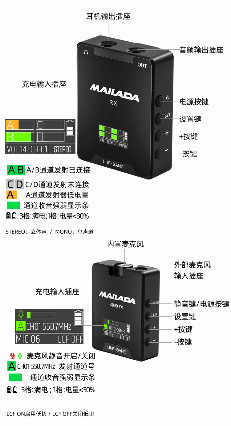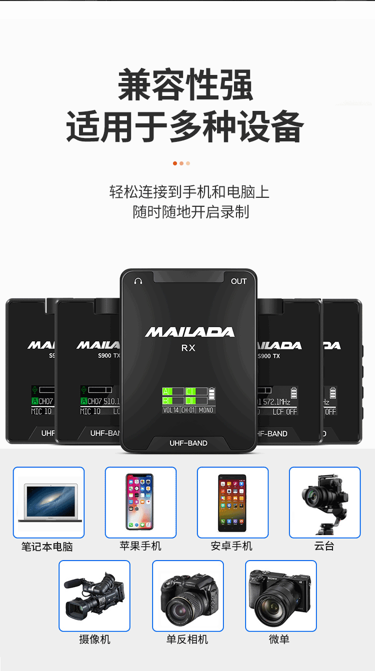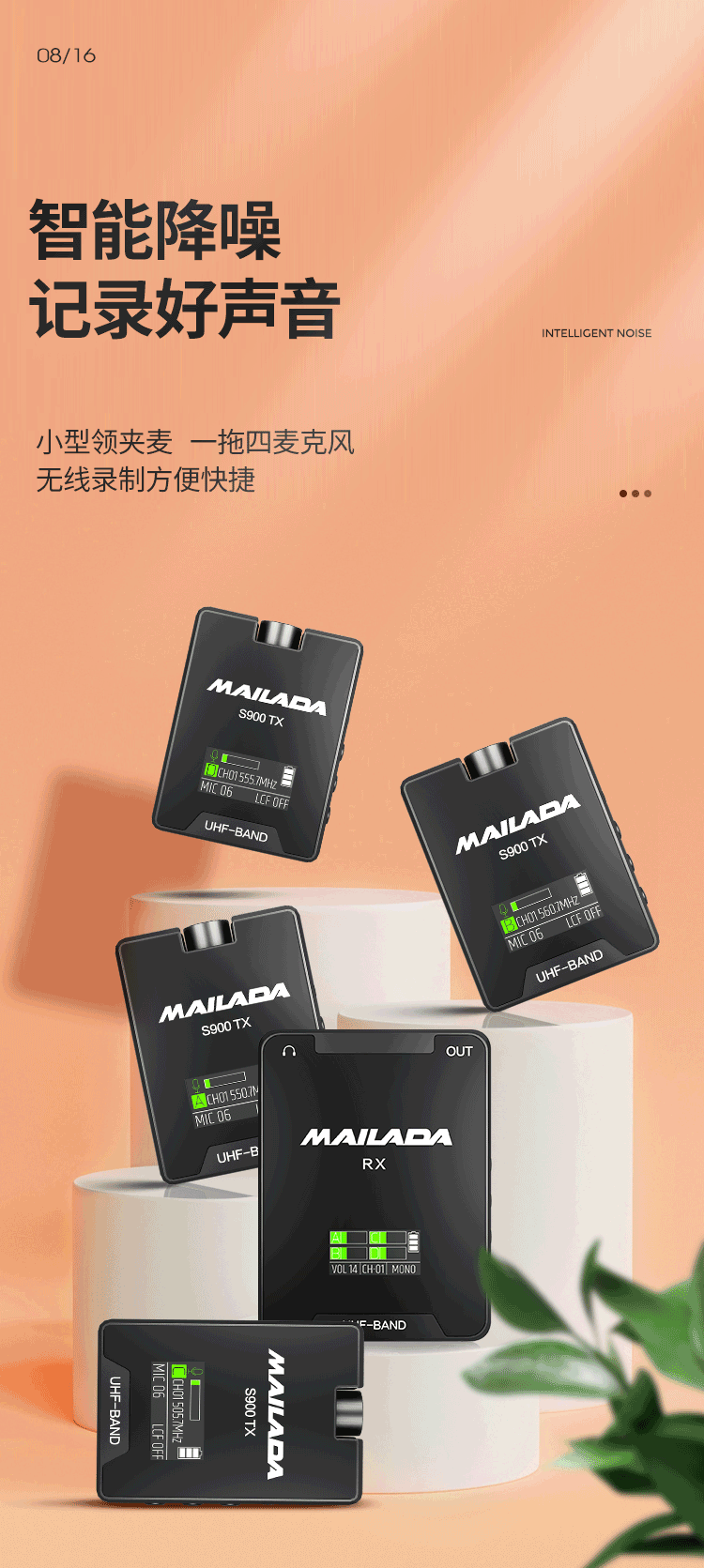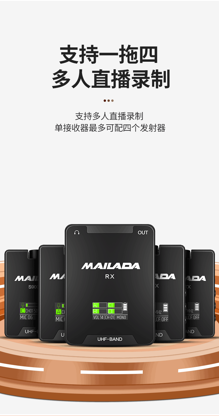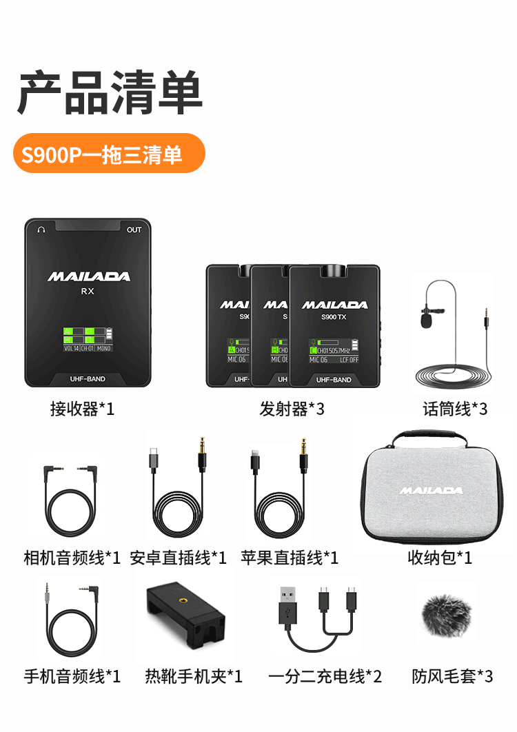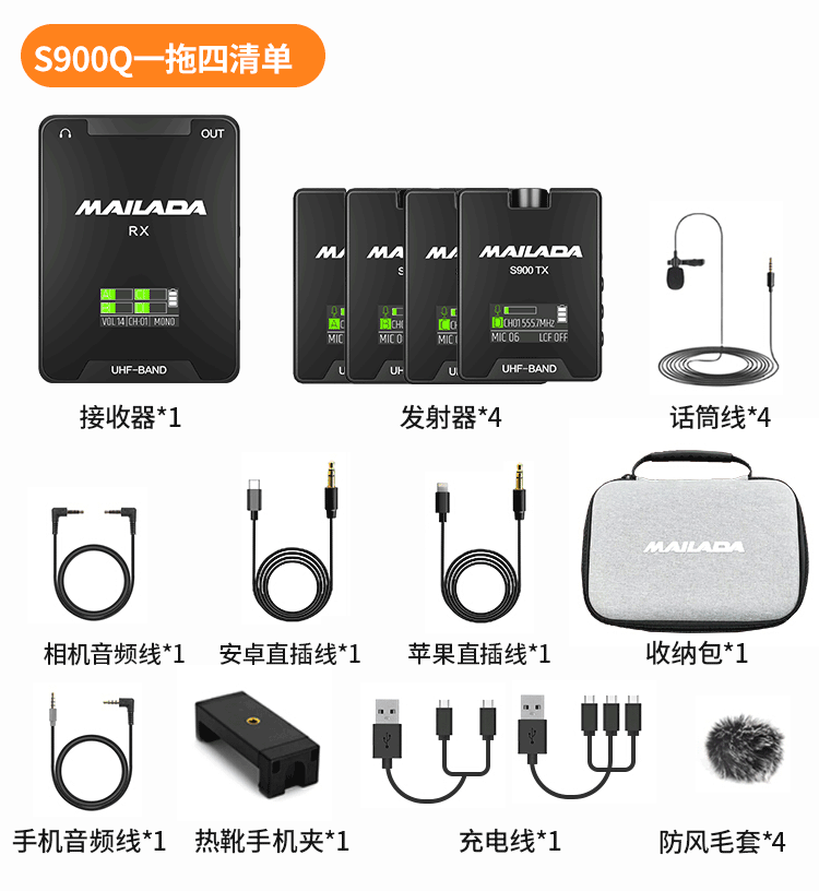 Mailada S900 Little Bee lavalier microphone mobile phone live broadcast equipment SLR camera radio microphone interview recording microphone computer radio S900Q black one to four
