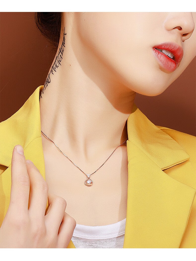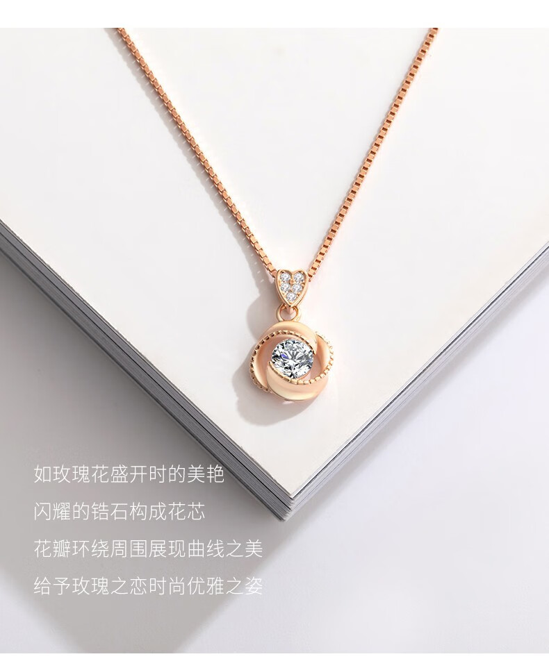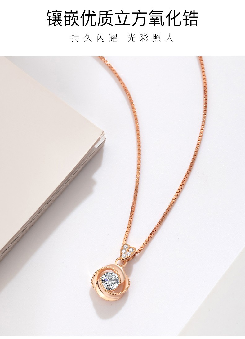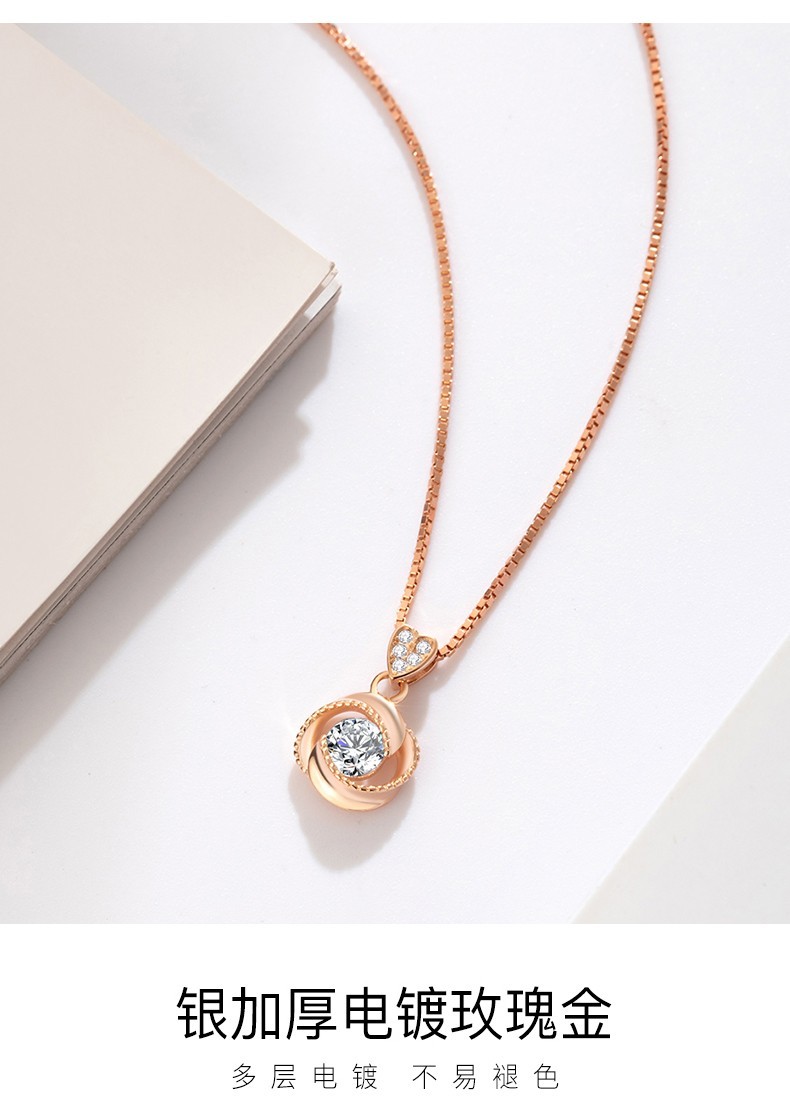 French four-leaf clover necklace for women, rose gold clavicle chain pendant, birthday gift for girlfriend and wife, rose gold (set with 50-point zirconium diamond)