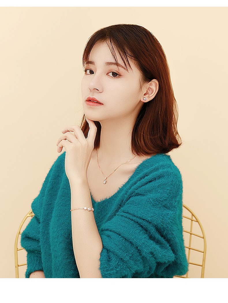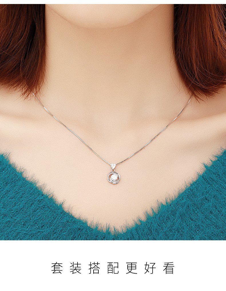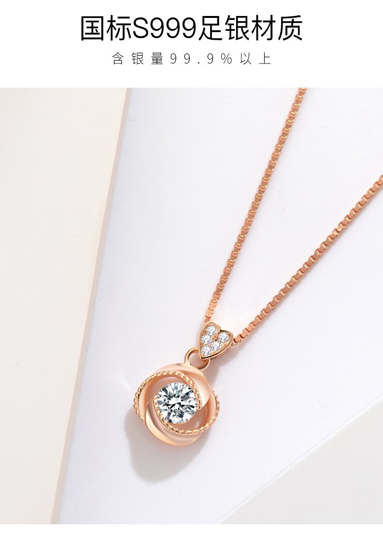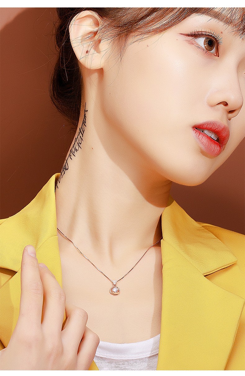 French four-leaf clover necklace for women, rose gold clavicle chain pendant, birthday gift for girlfriend and wife, rose gold (set with 50-point zirconium diamond)