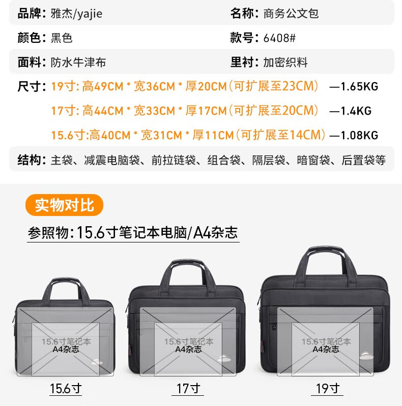 Yajie Business Briefcase Men's Canvas Laptop Bag Large Capacity Oxford Document Business Office Work Crossbody Travel Black Extra Large 19 Inch Length 49* Height 36* Thickness 20cm