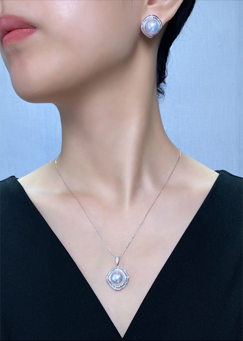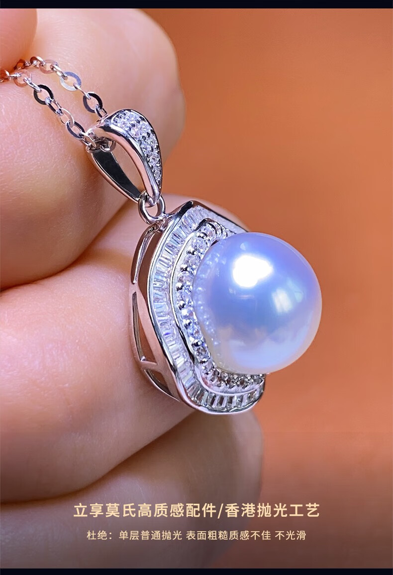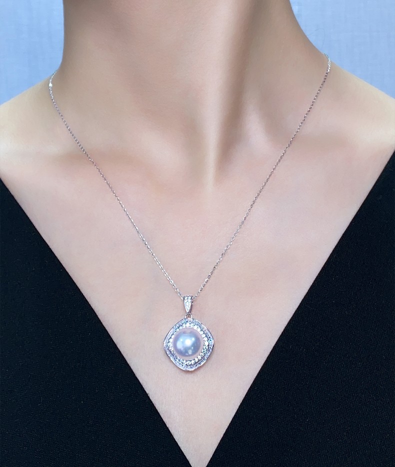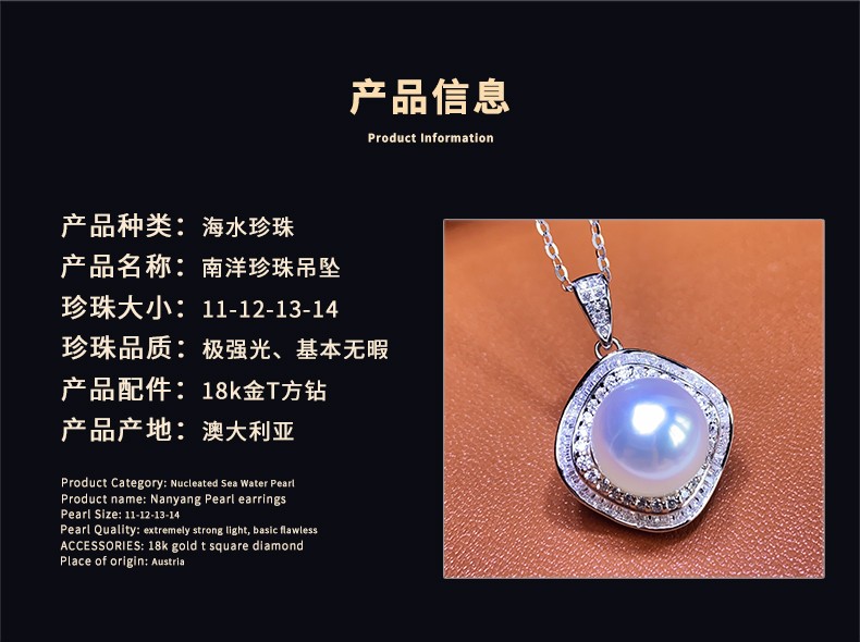 Moh's South Sea white pearl necklace, natural Australian white, round, flawless seawater pearl pendant, 18K gold inlaid with diamonds, diamond-shaped pearl pendant for girlfriend, wife, elders, white pearl pendant 12-13mm