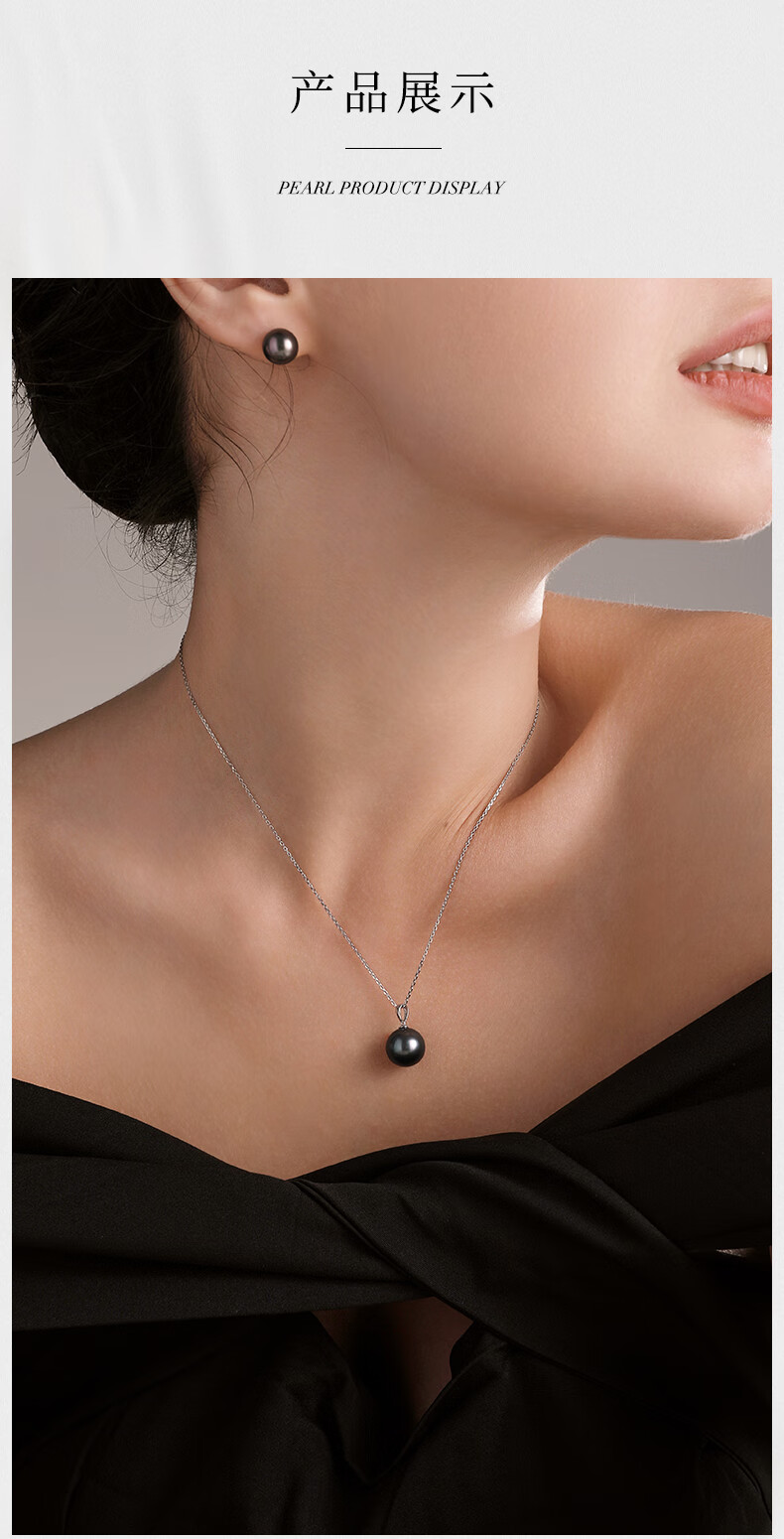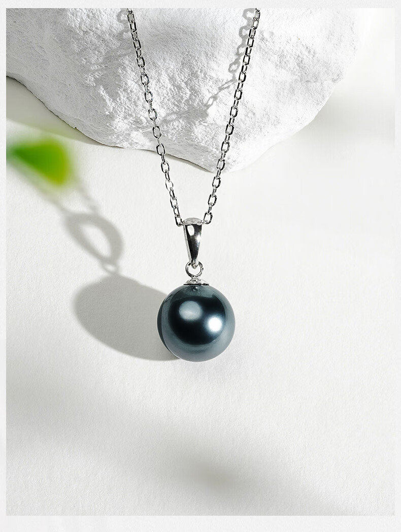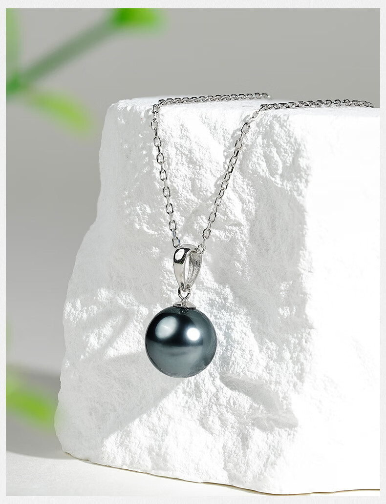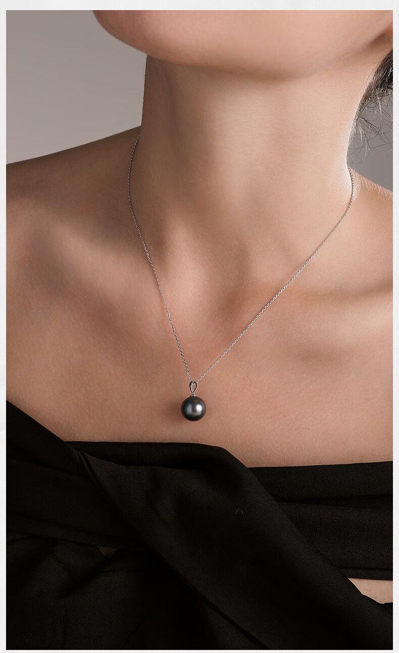 Tahitian 18K gold black pearl pendant classic round bright seawater pearl necklace S grade 9-10mm +18K gold chain