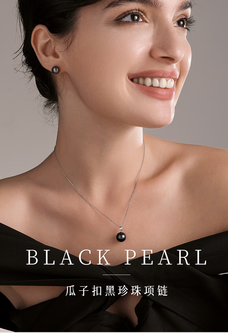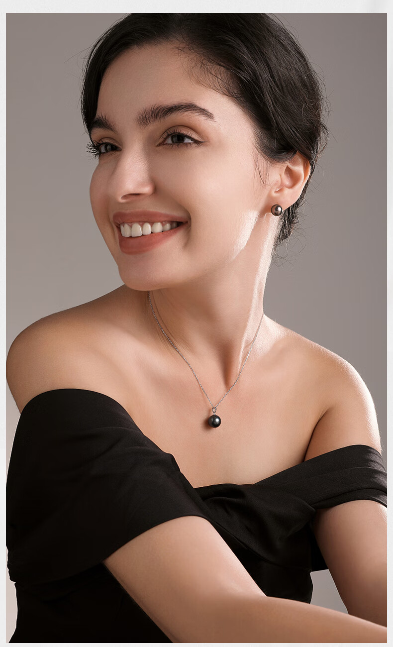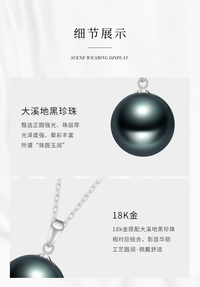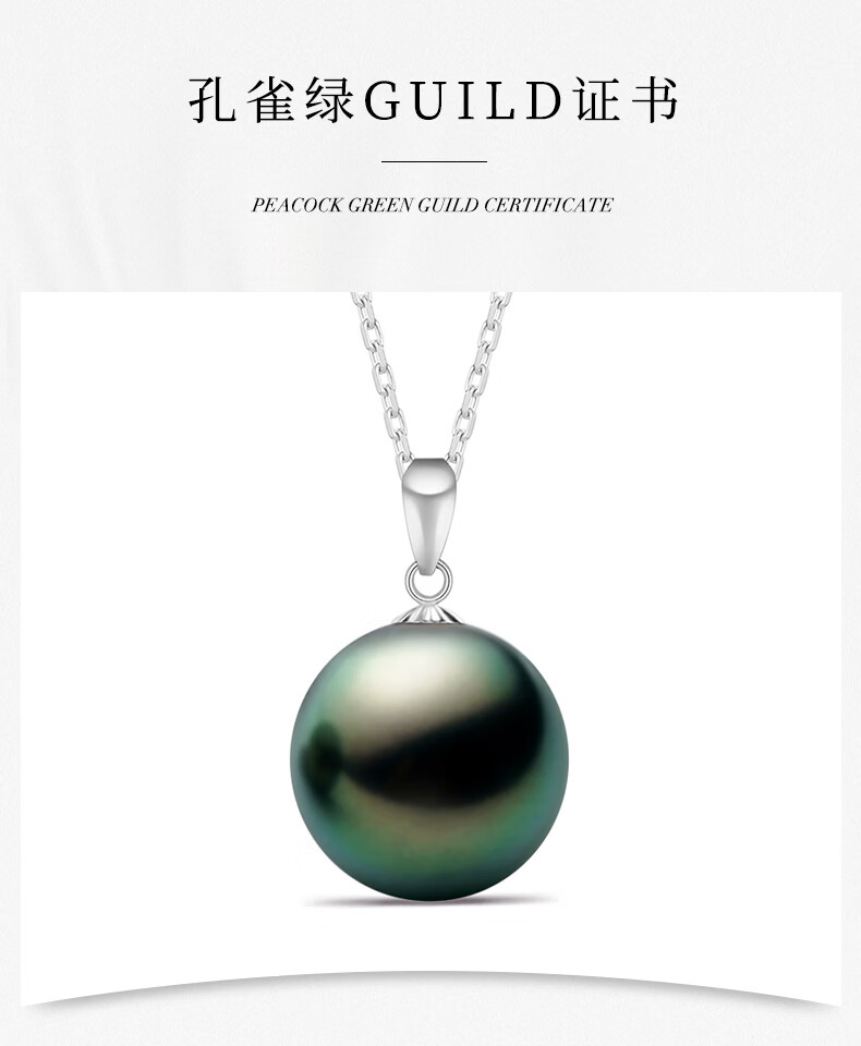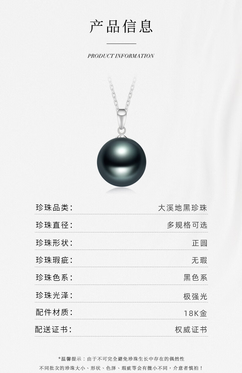 Tahitian 18K gold black pearl pendant classic round bright seawater pearl necklace S grade 9-10mm +18K gold chain