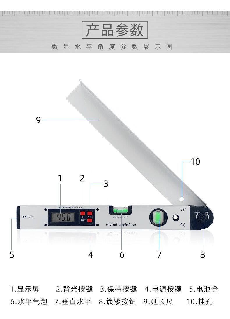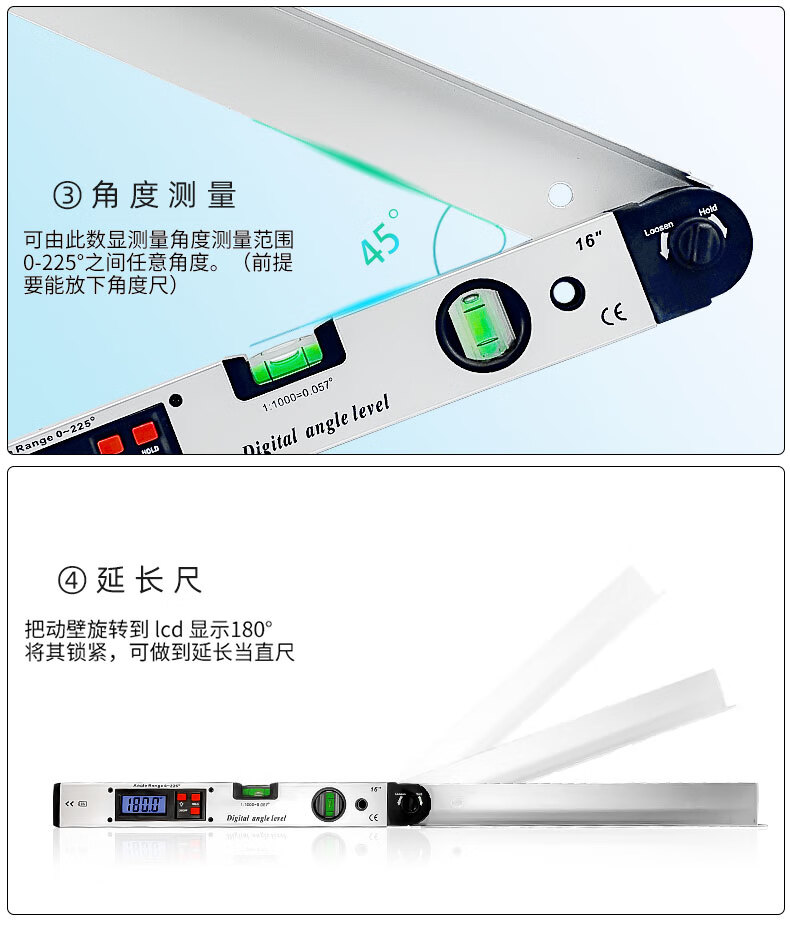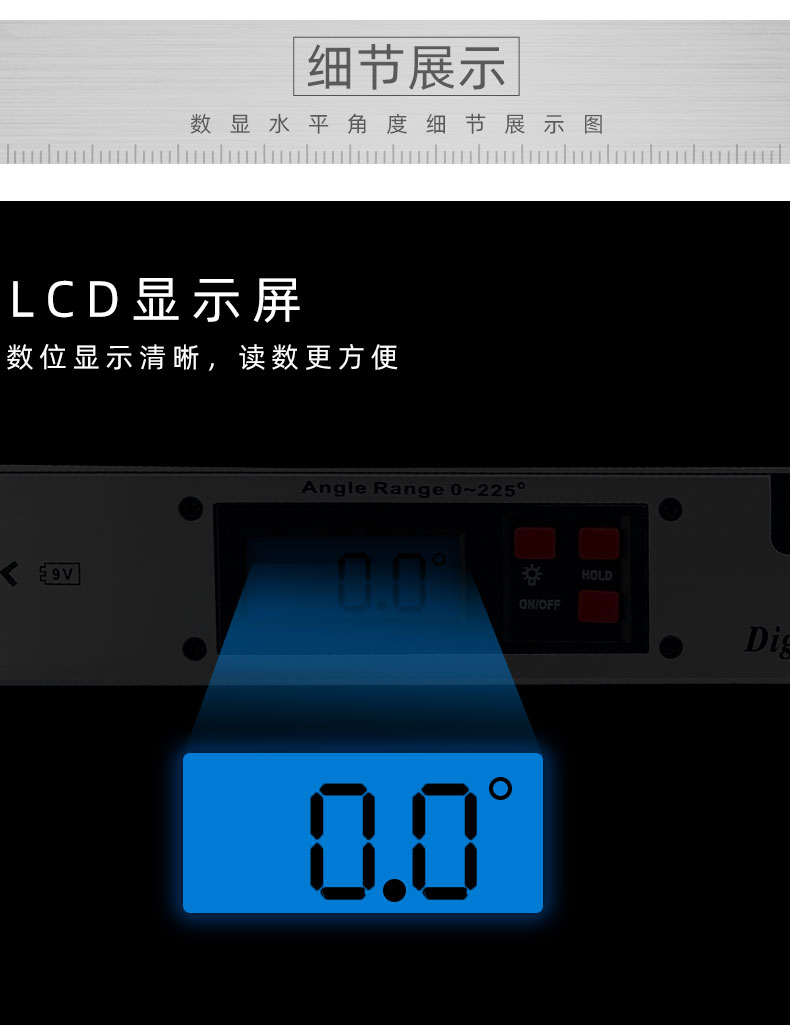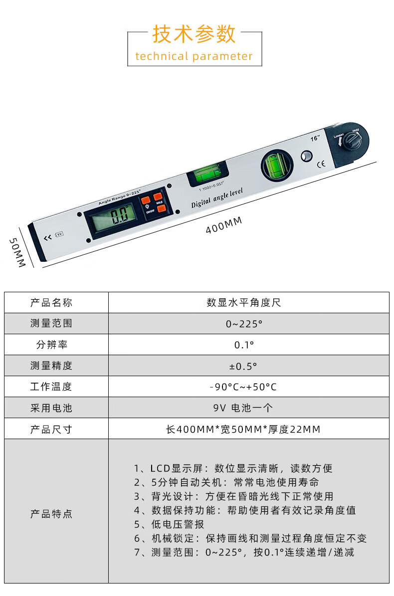 Measuring accurate 225 degree digital display angle ruler protractor digital display level ruler angle ruler yin and yang electronic horizontal angle ruler customization