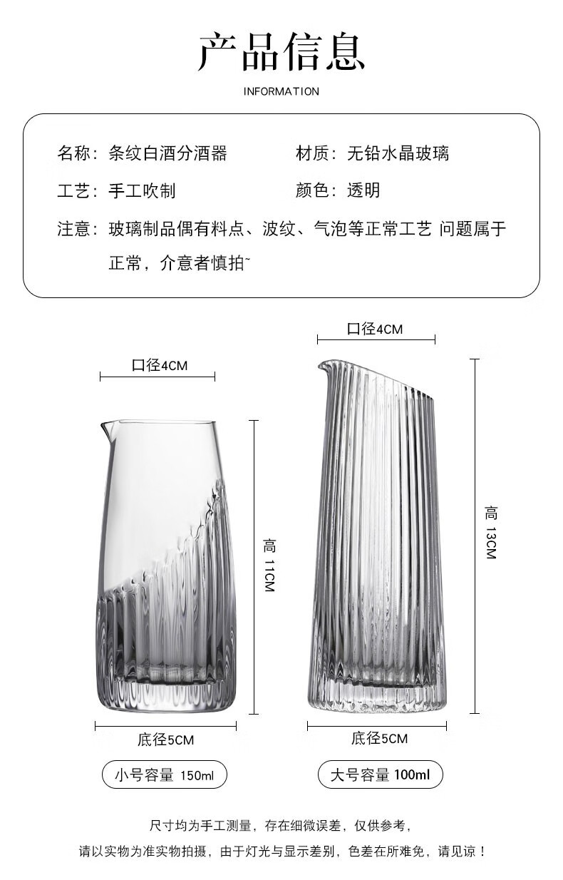 FEiNASi creative striped glass wine dispenser white wine cup household wine dispenser pot small wine pourer 100ml vertical pattern wine dispenser (6 pieces)