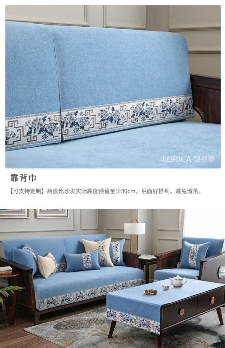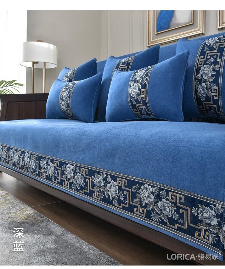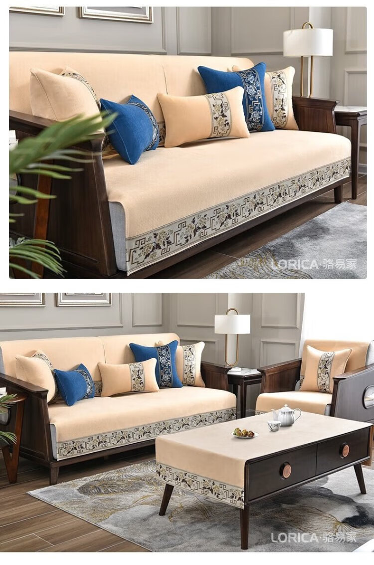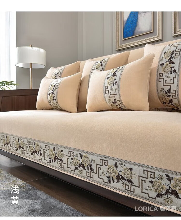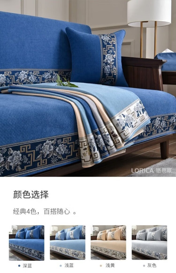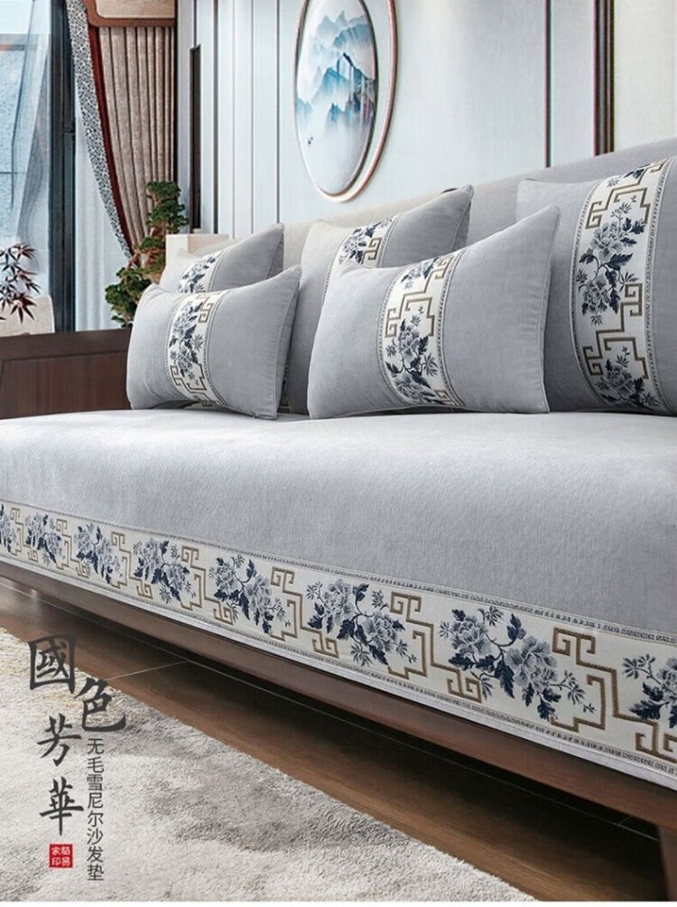 Luo Yijia (LORiCA) New Chinese Sofa Cushion 2025 New Chenille Non-Slip Cover Cloth Cover High-end Solid Wood Cover Customized for Four Seasons National Color Fanghua (Chenille) - Gray Customized Special Photo Contact Customer Service, Private Photos Will Not Be Posted