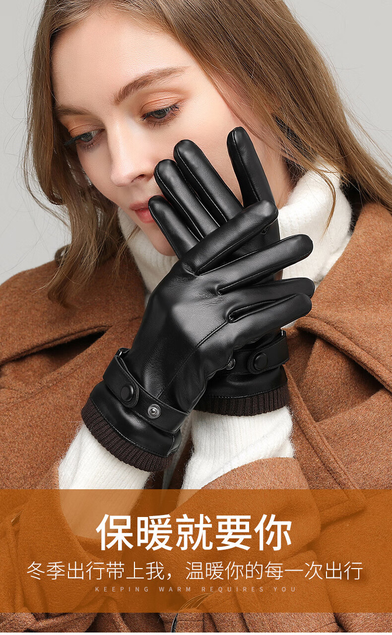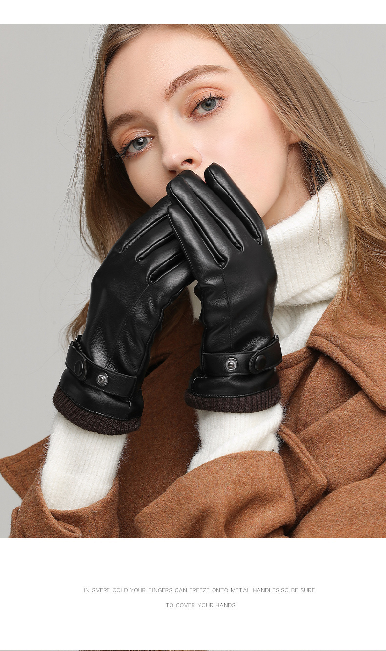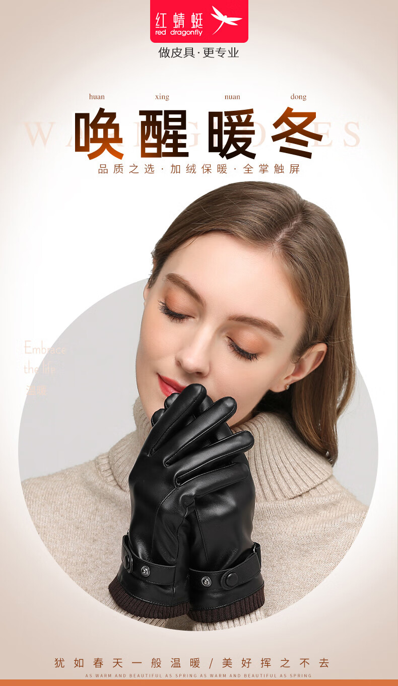 Red Dragonfly Leather Gloves Women's Winter Velvet Thickened Water-Repellent Windproof Touch Screen Winter Student Riding Motorcycle Warm Gloves Touch Screen Velvet Women's Screw Model Warm and Comfortable Velvet Lining