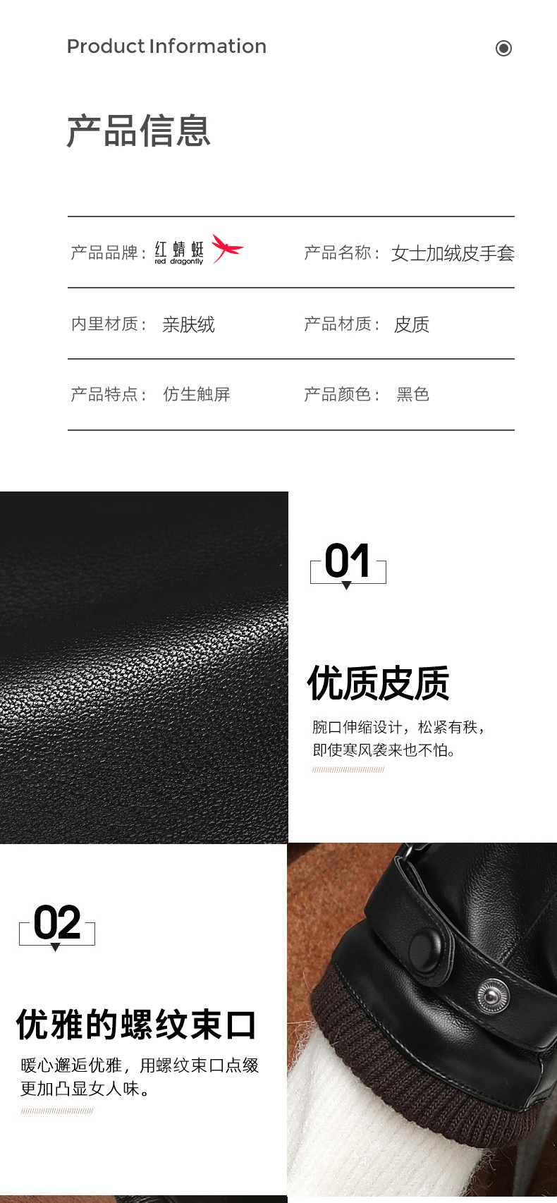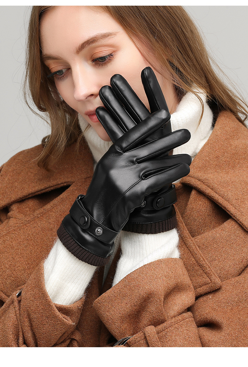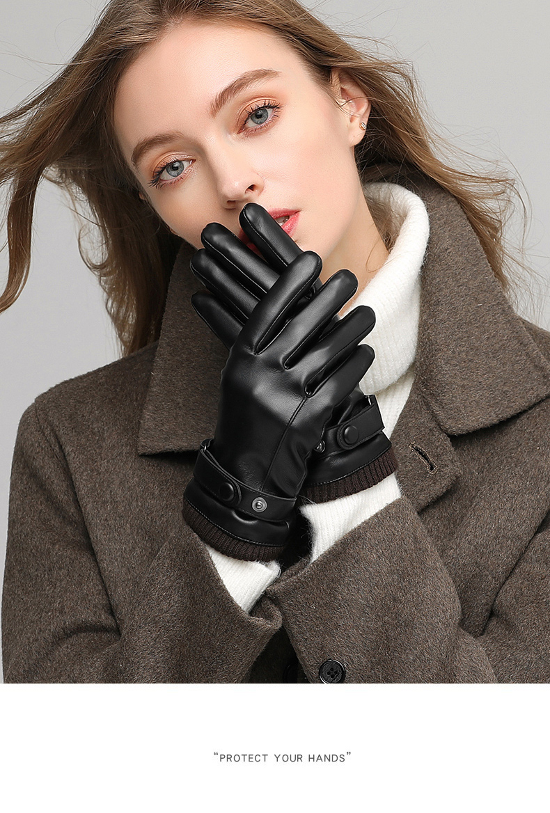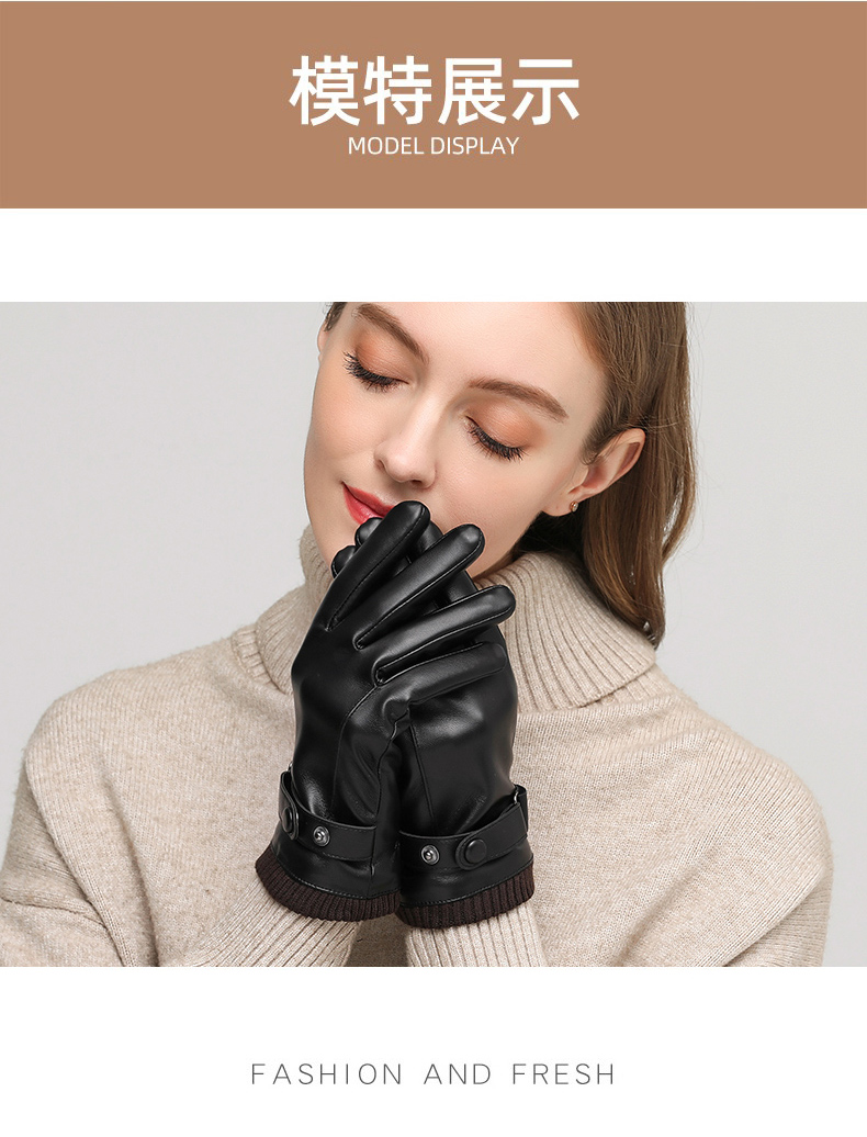 Red Dragonfly Leather Gloves Women's Winter Velvet Thickened Water-Repellent Windproof Touch Screen Winter Student Riding Motorcycle Warm Gloves Touch Screen Velvet Women's Screw Model Warm and Comfortable Velvet Lining
