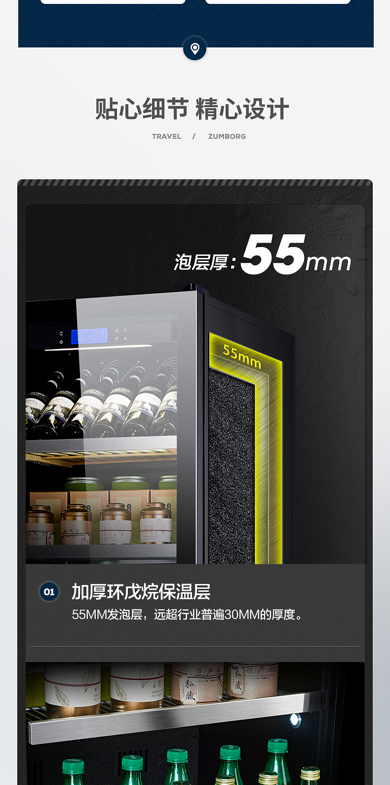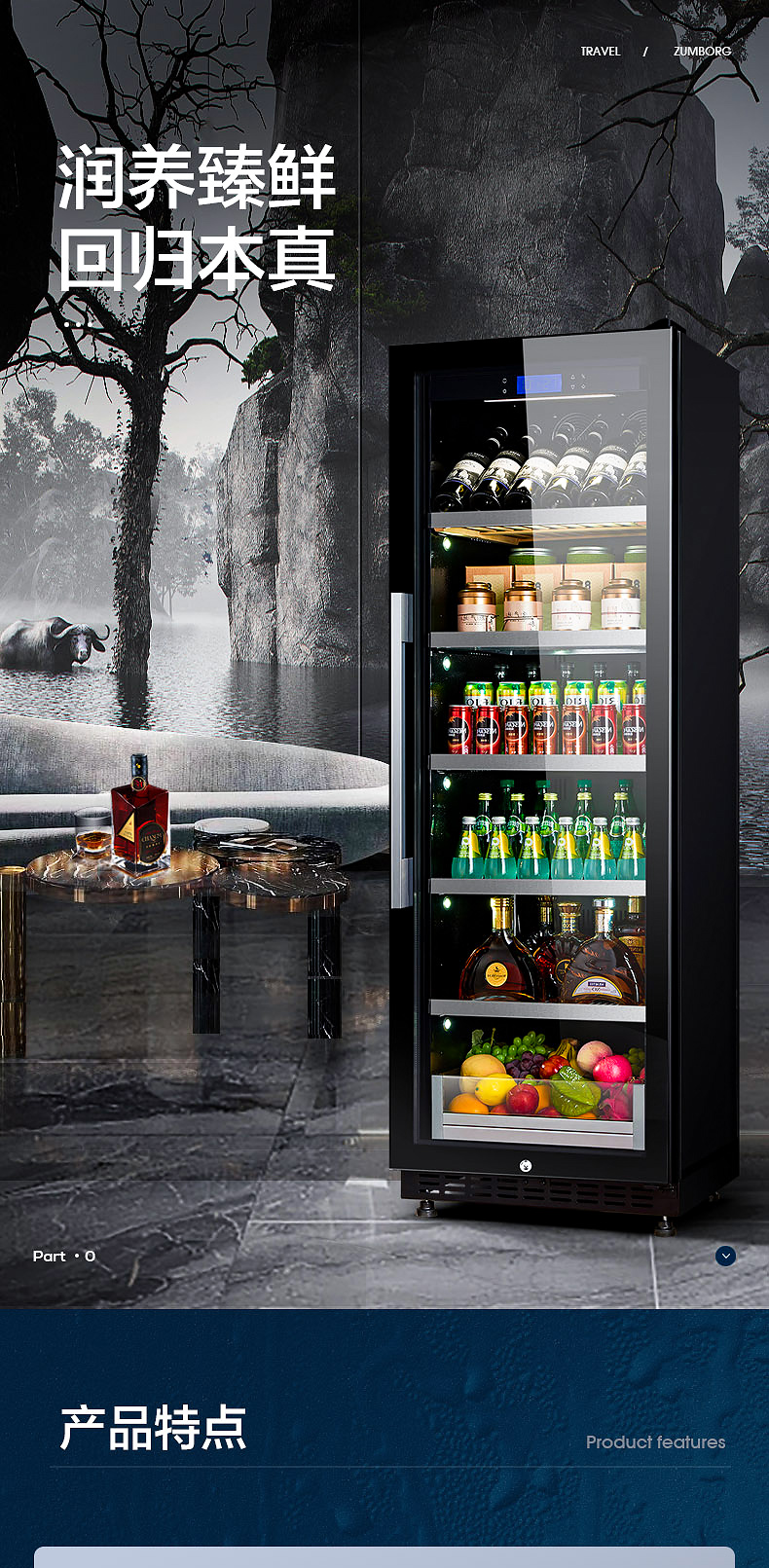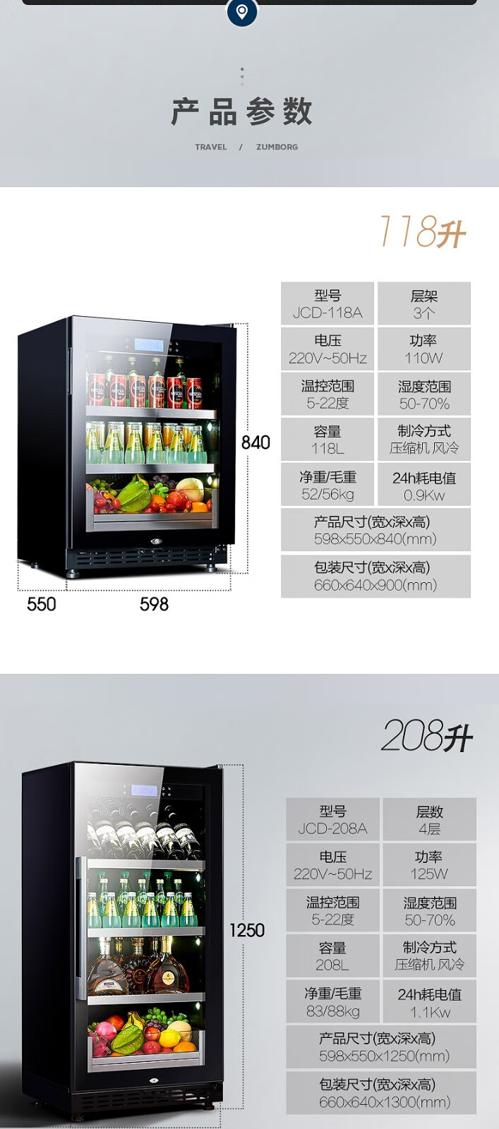 Zunbao home living room office tea cabinet beverage cabinet fruit cabinet refrigerated cabinet freshness constant temperature wine cabinet red wine cabinet black 0.84 meters