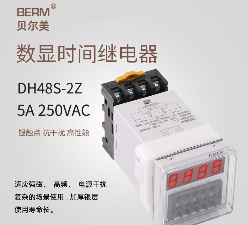 Bellmei DH48S-2Z high-precision digital display time relay two sets of delay 220V24V380V 9999H customized DH48S-2Z AC 220V with base shipped within 7 days