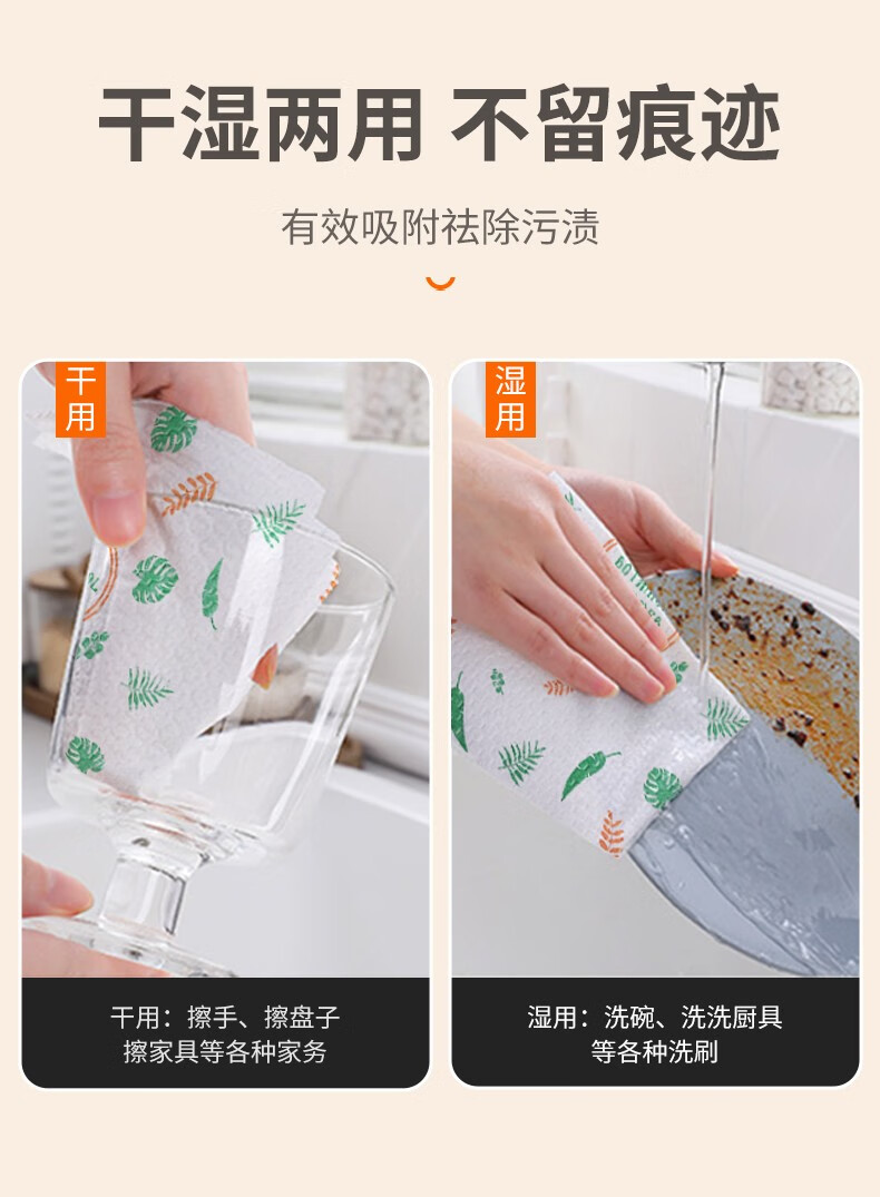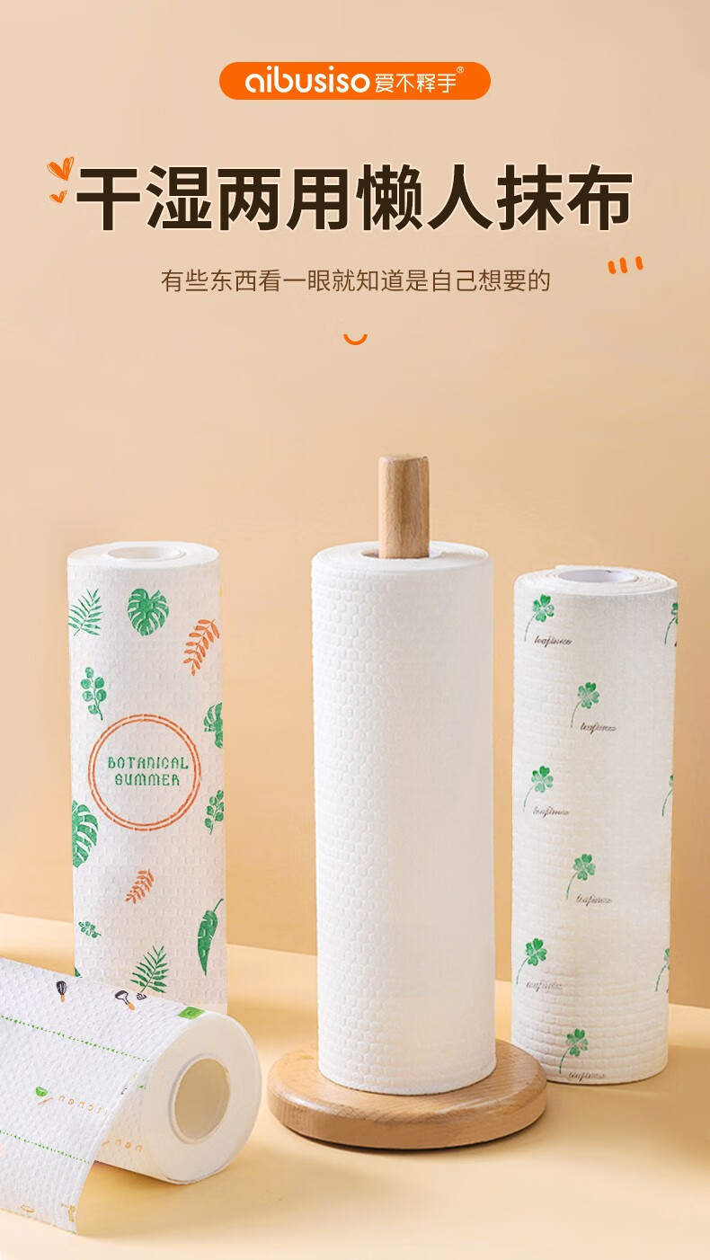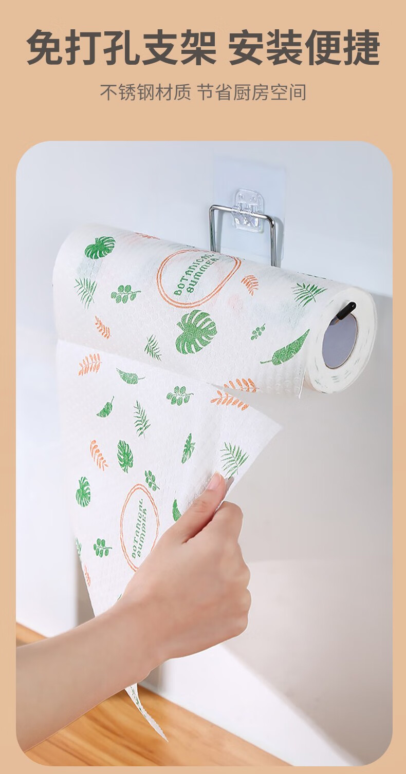 Double kitchen paper disposable thickened lazy rag household kitchen paper towels for cleaning wet and dry use washable four-leaf clover six rolls + hook