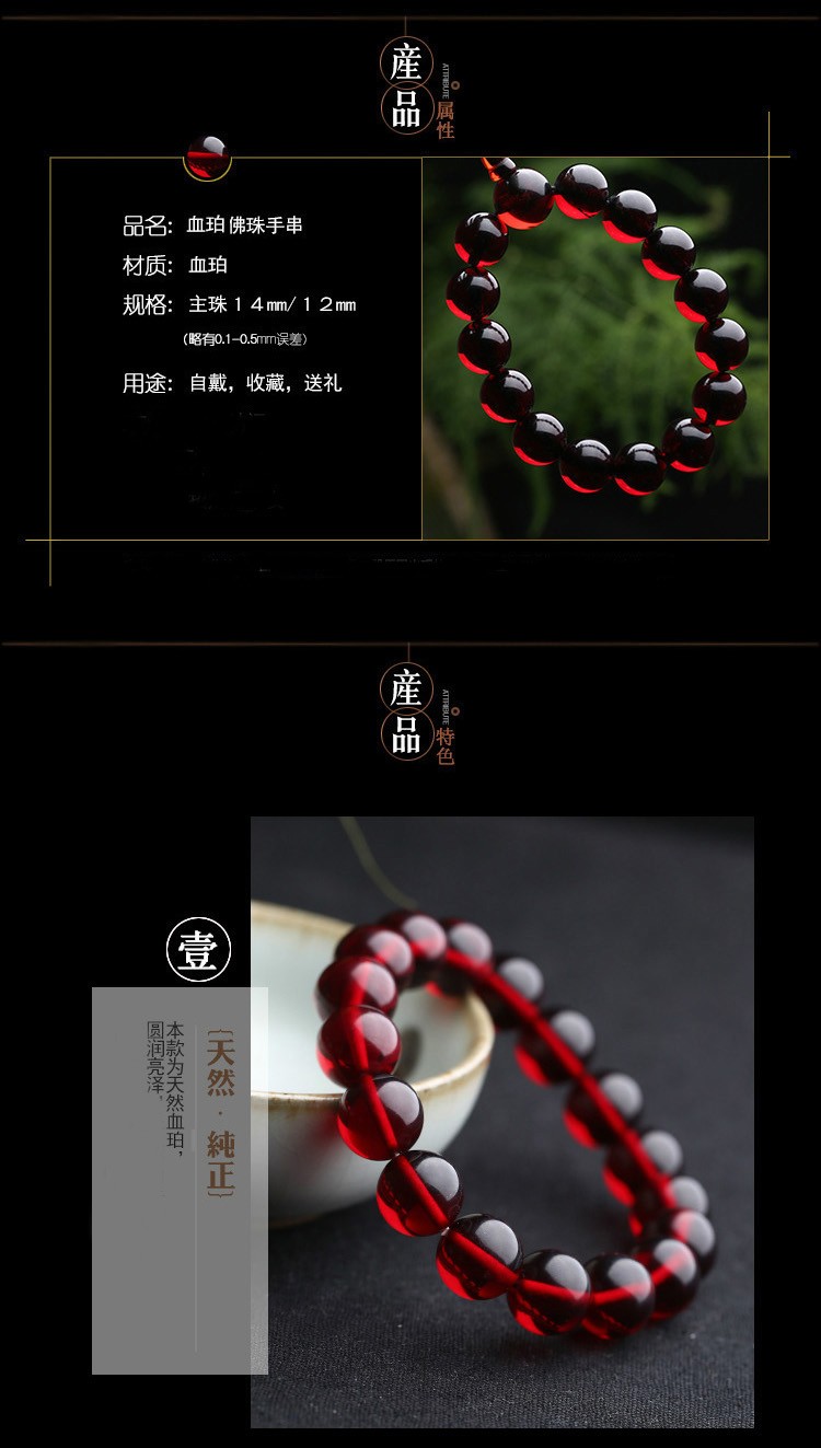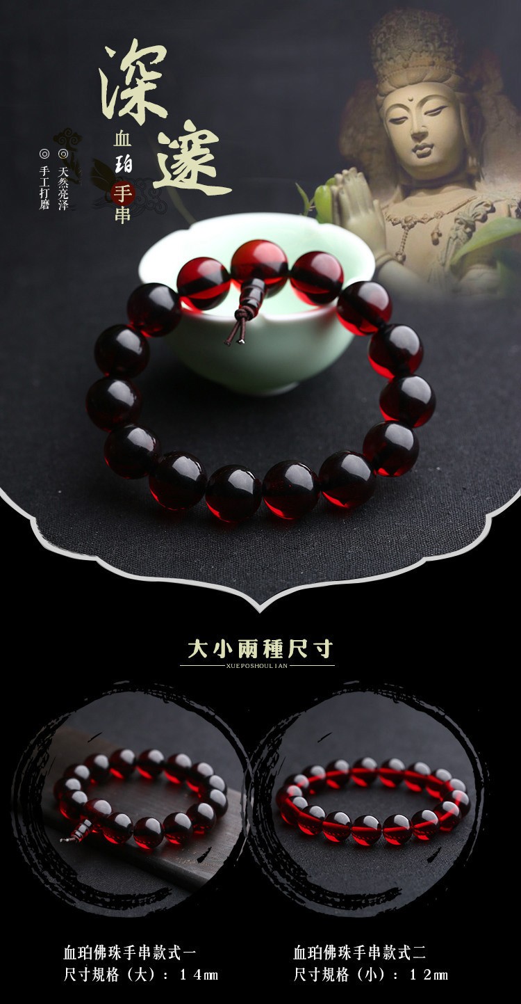 Dingying 7A grade amber blood amber bracelet, round beads for men and women, hand-held large beads rosary beeswax bracelet, gift for husband, car gear beads, 0.8mm single circle 7A (women's model)
