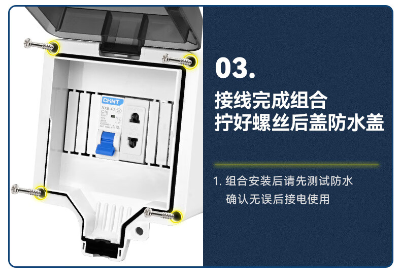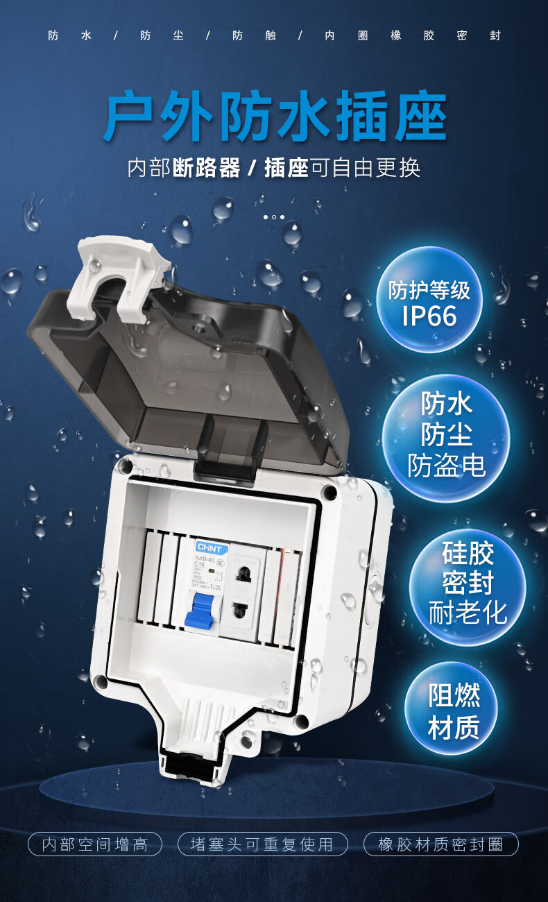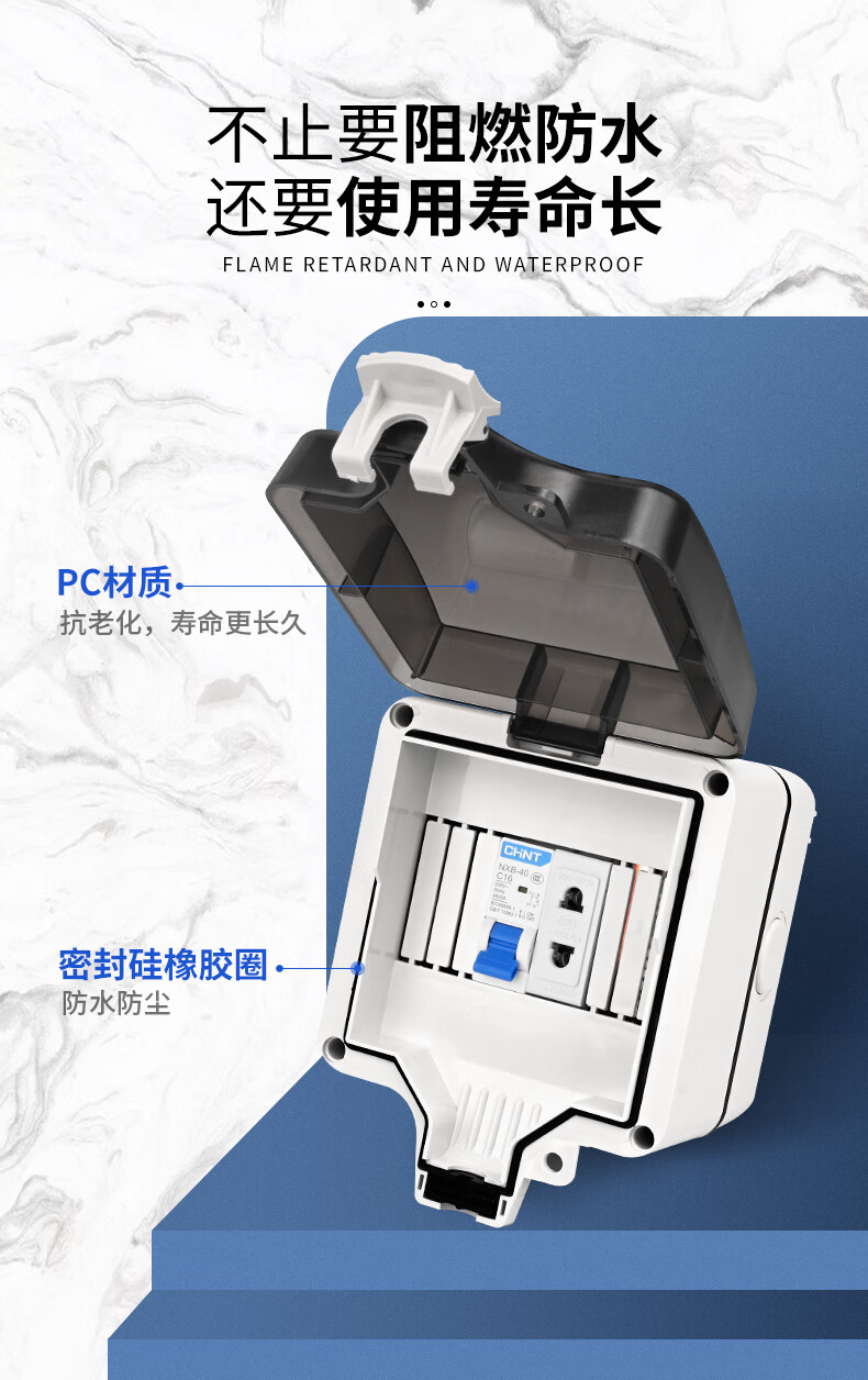 Chint (CHNT) waterproof air-opening box with NXB modular socket AC30 single-link double-link package (non-Chint) DLQFSH-7067-1 single-link waterproof box + 16A circuit breaker + 10A five-hole