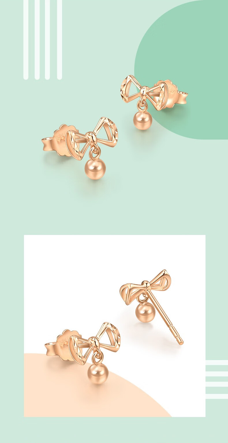 Chow Sang Sang 18K color gold stud earrings, mint series bow, women's model 92795E pricing